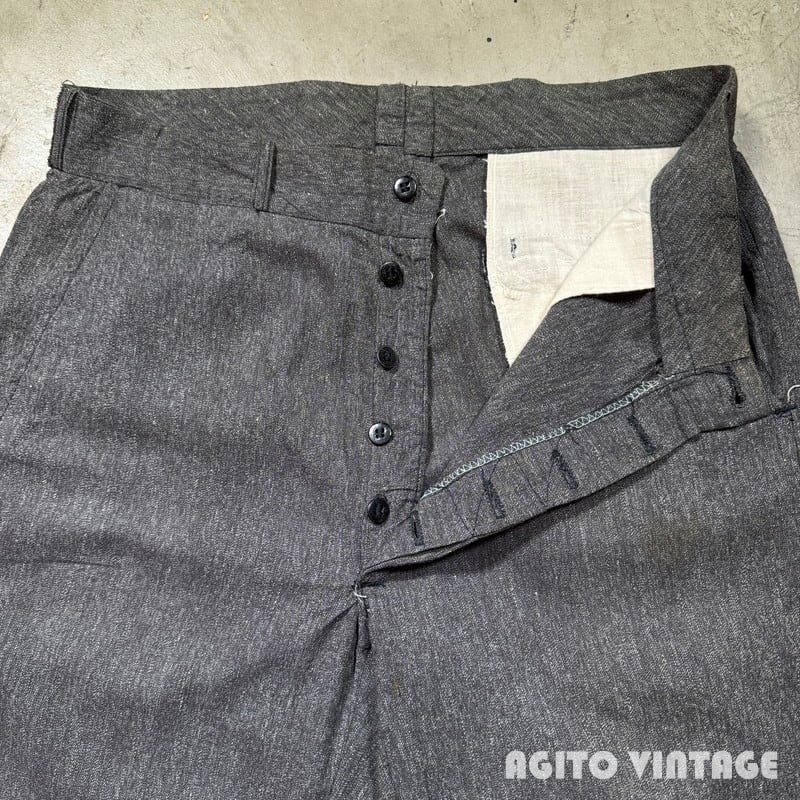 50's~ Unknown ブラックシャンブレーワークパンツ ボタンフライ ガゼットクロッチ グッドコンディション 耳付き 実寸W32 希少 ヴィンテージ BA-2882 RM3303H