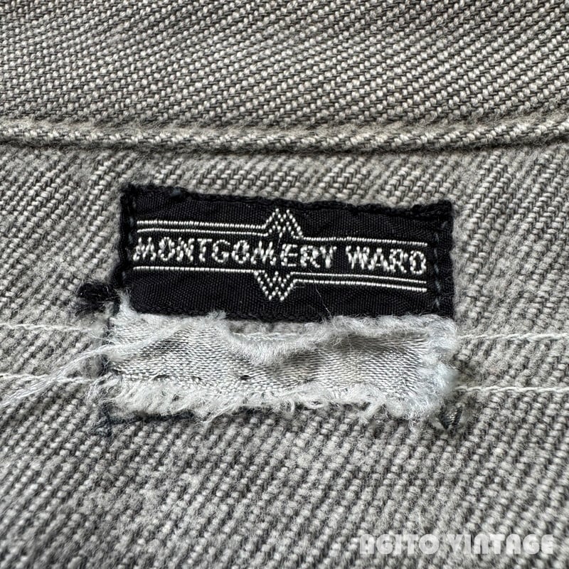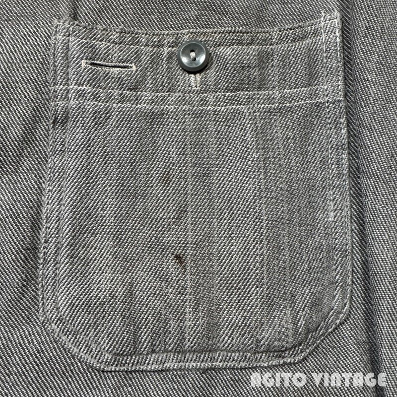 30's~ MONTGOMERY WARD コットンコバートワークシャツ モンゴメリーワード ストアブランド SALT&PEPPER 台襟 マチ付き ダブルステッチ M相当 希少 ヴィンテージ BA-2883 RM3304H