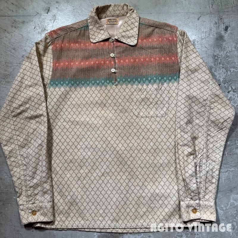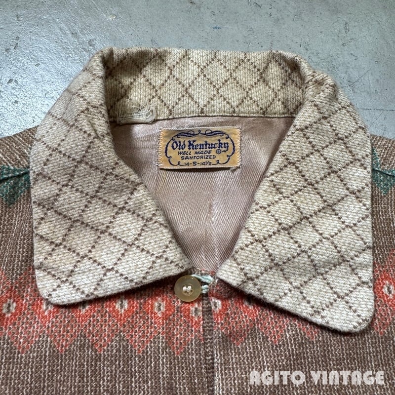 50's Old Kentucky オールドケンタッキー プリントネルプルオーバーシャツ グッドコンディション Sサイズ 希少 ヴィンテージ BA-2885 RM3306H