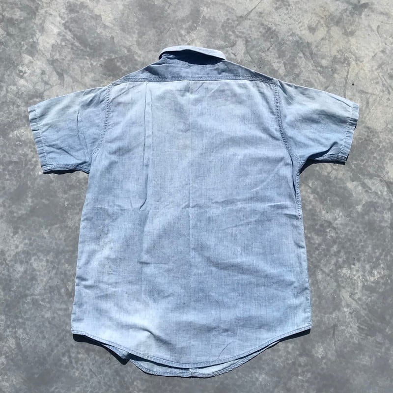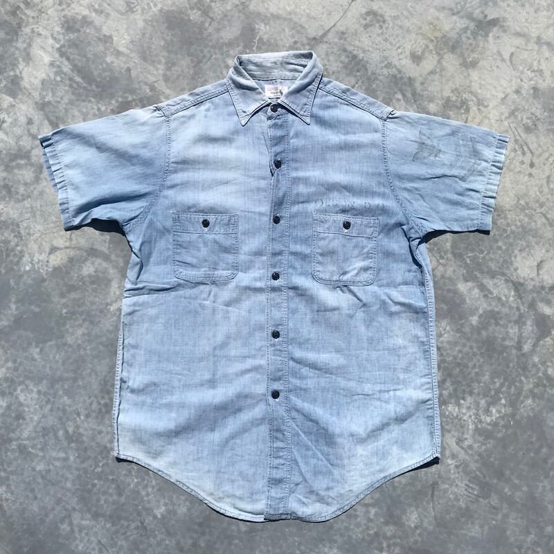 50's 60's U.S.NAVY シャンブレーシャツ 半袖 ステンシル 海軍 民間 SANFORIZED WPL6326 猫目ボタン M位 ミリタリー 希少 ヴィンテージ