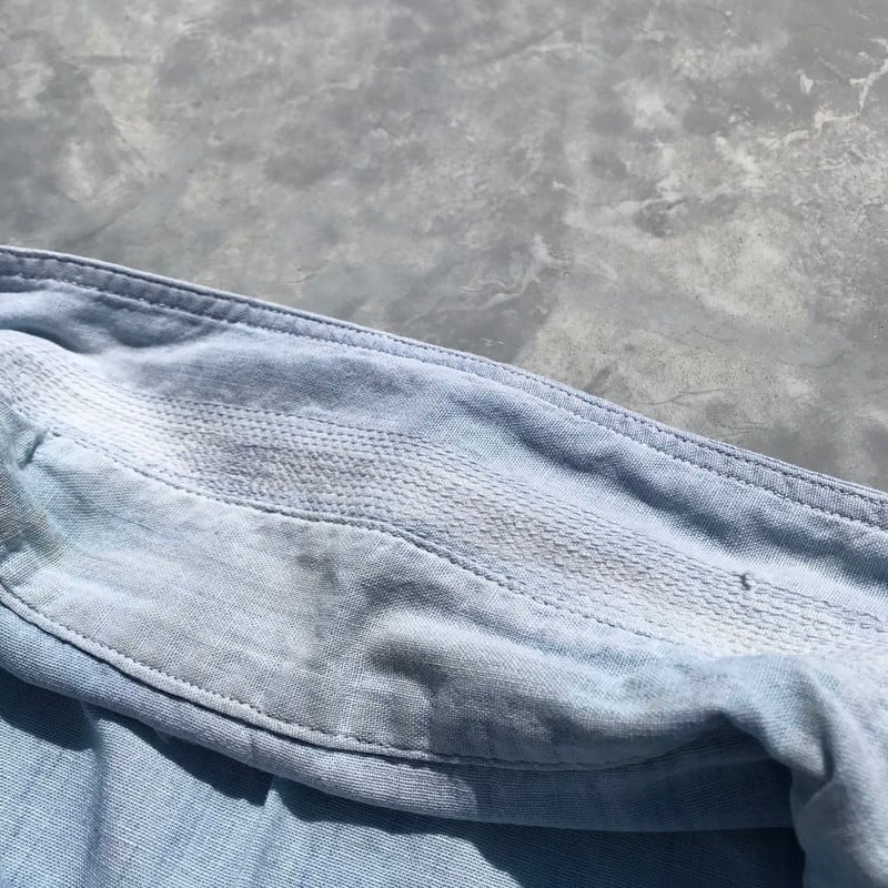 50年代から60年代頃のU.S.NAVYシャンブレーシャツです。首元にSANFORIZEDのタグが付き胸元と、左肩にも階級章のステンシルが入ります。ボタンは全て猫目ボタン、縫製はダブルステッチとなります。ミルスペック表記も無く、ボタン裏側は耳付きでは無く縫製されており、民間のメーカーが製造された物と思われます。首元と、背面2箇所にリペアがございます。全体にフェードが強く色味も薄めですが、夏に合わせやすい色合いですので、チノパンやカーゴパンツ等と合わせてみてはいかがでしょうか?