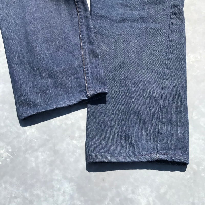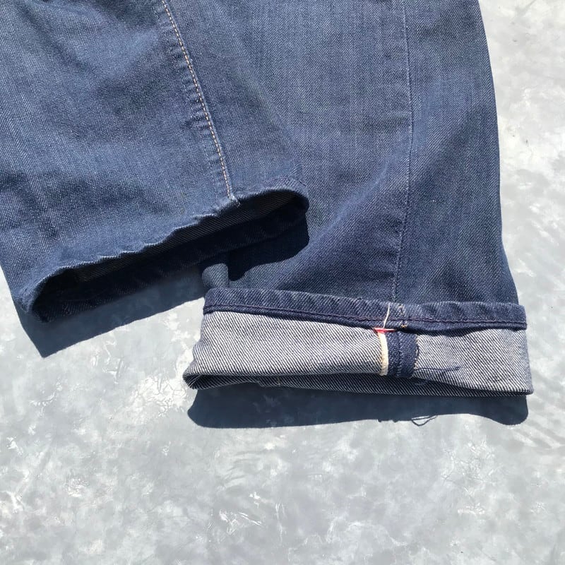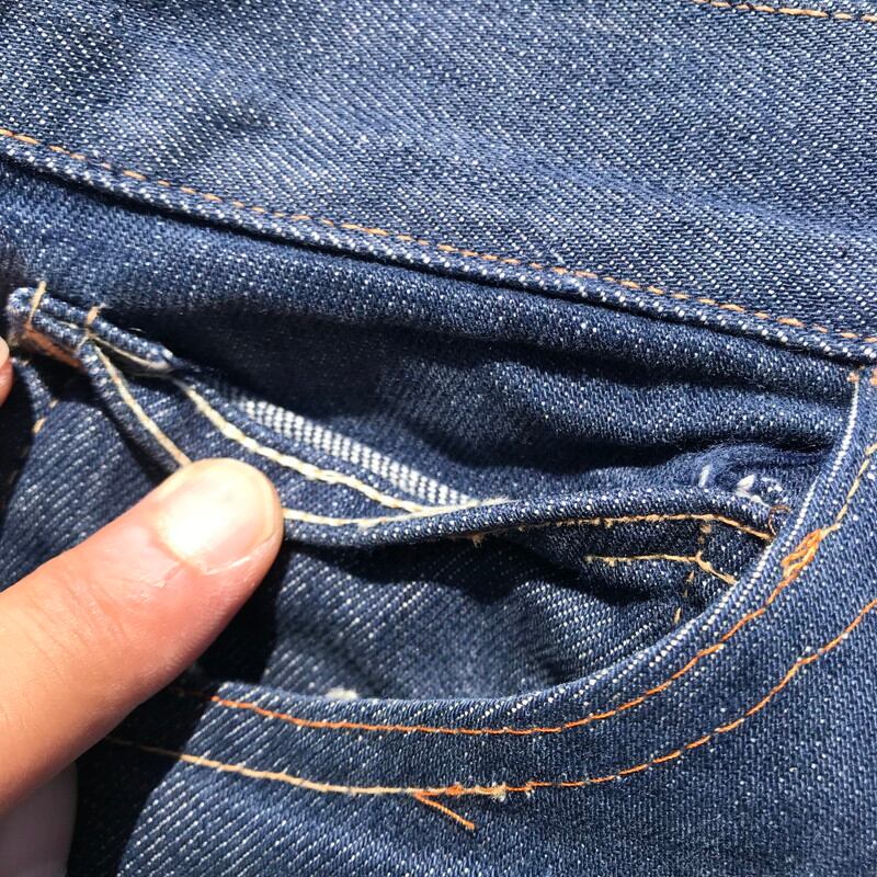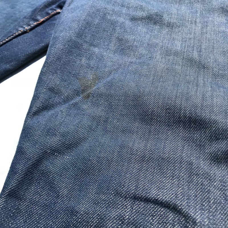 60年代から70年代頃のFOREMOST5ポケットデニムパンツです。アメリカを代表する3大ストアのJC Pennyが展開するプライベートブランドです。古着市場で見かけるFOREMOSTのデニムはリベット打ちされていてシルエットもストレートでゆったりとしているものが多いですが、こちらはリベットでは無くカンヌキ留めされていて、裾に向かってテーパードのかかったスリムなシルエットが特徴です。TALONジッパーを採用し、片耳のセルヴィッジデニムが使用されています。(右足のセルヴィッジは少しほつけているので、耳が分かりにくくなっています。)デニム自体は濃紺ですが、ところどころに汚れや、ステッチ飛びがございます。現代のファッションに合わせやすいシルエットですので、おススメです。