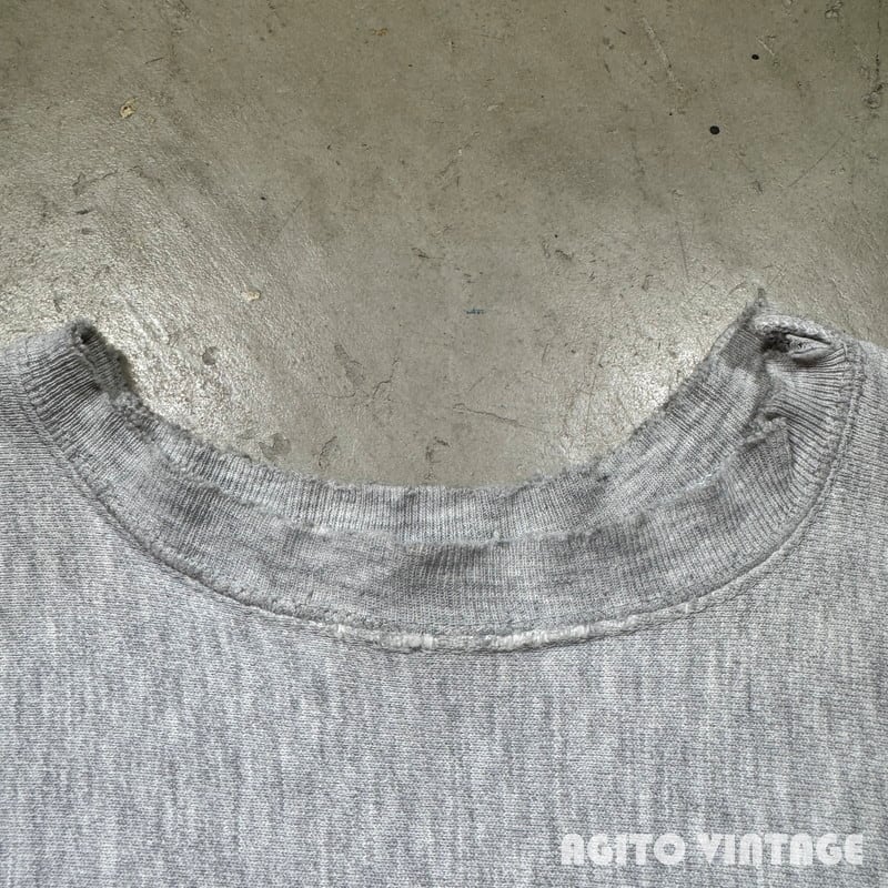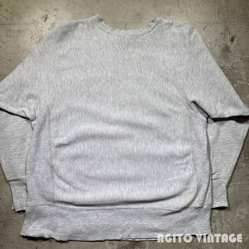 80年代のChampionリバースウィーブスウェットです。トリコタグが付くUSA製です。ご紹介するこちらはフロントにJOHNSON STATEの染み込みプリントが2段入ります。全体的に使用感があり、ネックや左肩、両袖先にダメージがございます。裾リブにもダメージや撚れが見られます。目立つ汚れはございません。LARGE表記で程よいサイズ感です。ダメージがある個体ですが、古着としての雰囲気は良いのでダメージやボロ等がお好きな方は是非いかがでしょうか。
