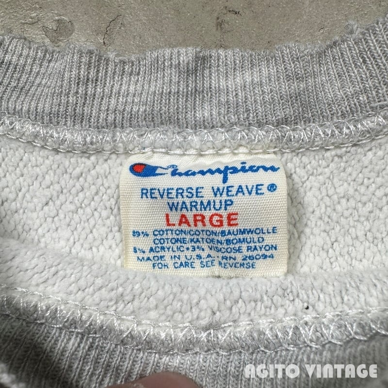 80's Champion チャンピオン リバースウィーブスウェット JOHNSON STATE 染込みプリント トリコタグ グレー ダメージ有り LARGE USA製 希少 ヴィンテージ BA-2890 RM3311H
