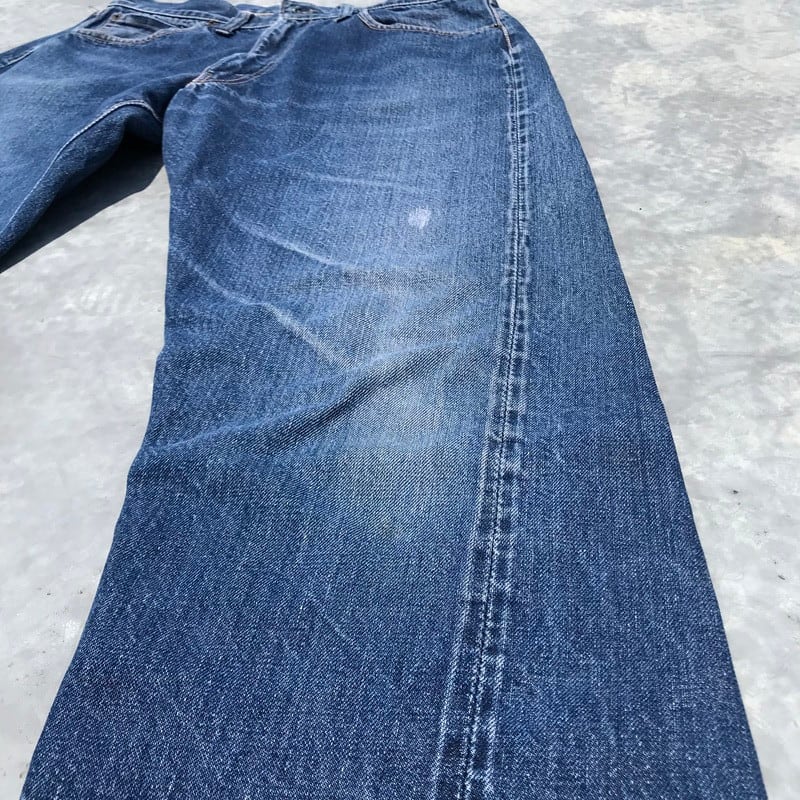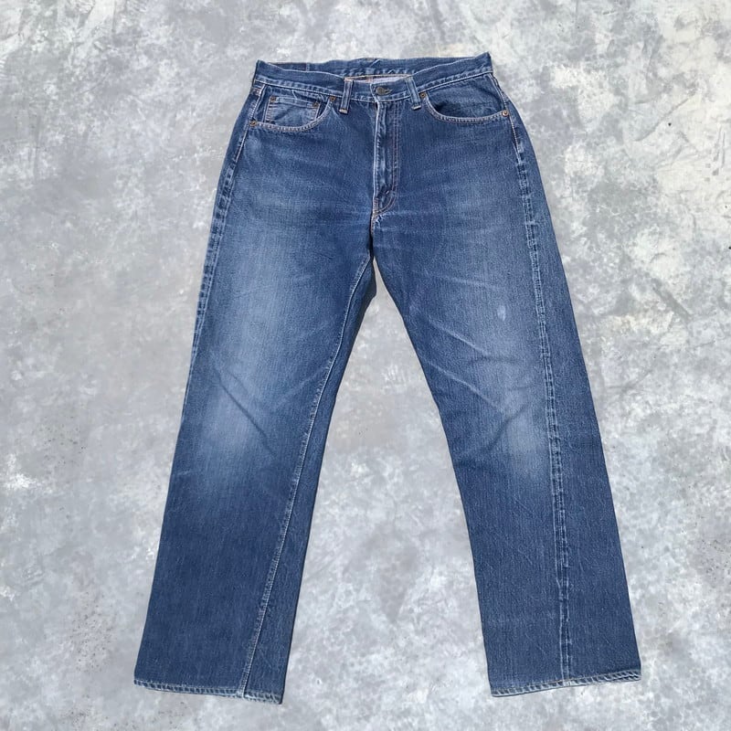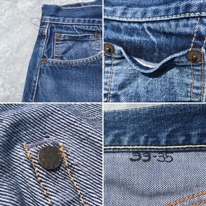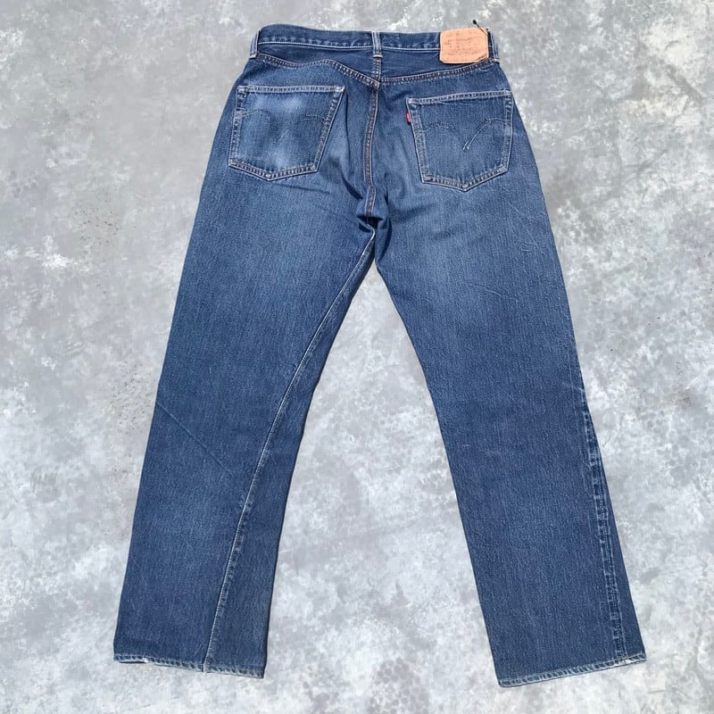 60年代頃のリーバイス501ZEXXです。あまり見慣れない型番ですが、ロングレングス規格の為EXX表記となり非常に珍しい1本です。トップボタン裏刻印W、TOLONセミオートマチックジッパー、コインポケット裏耳付きシングル、リベット裏アルミ、隠しリベット、紙パッチギャラ無し、オンセットループ、ポケット裏シングル、両面赤タブ、Big E、均等V、イエローアーキュエイトステッチ、細めのセルヴィッジ。左腿あたりに1箇所リペアがございますが、それ以外は良好で、パッチの欠損も無く、バランスよく色落ちしております。内側に手描きでサイズが表記されています。L38表記ですが、レングスはオリジナルでは無く裾上げされていると思われます。W33とゴールデンサイズです。501ZEXXは、市場になかなか出ない個体ですので、コレクション用にもおススメです。