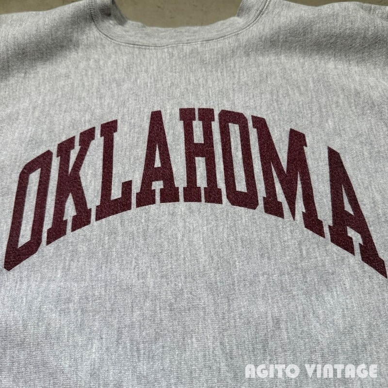 80's Champion チャンピオン リバースウィーブスウェット OKLAHOMA 染込みプリント トリコタグ グレー LARGE USA製 希少 ヴィンテージ BA-2894 RM3315H
