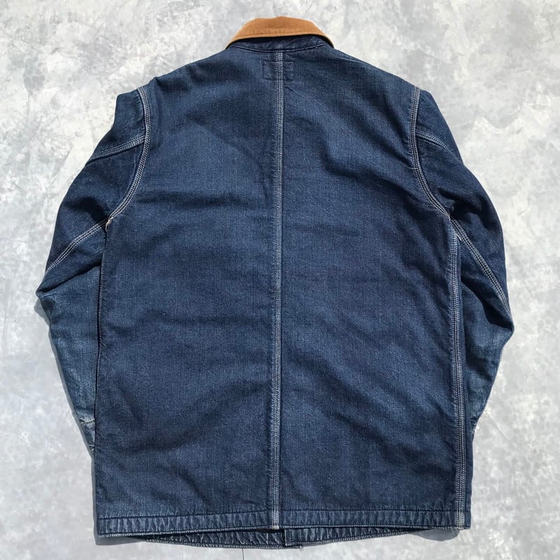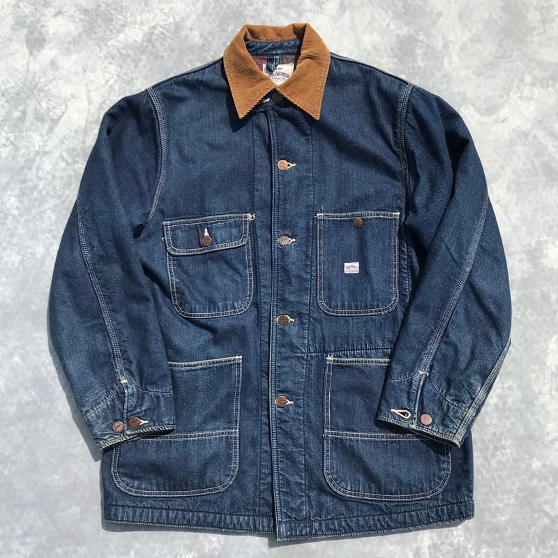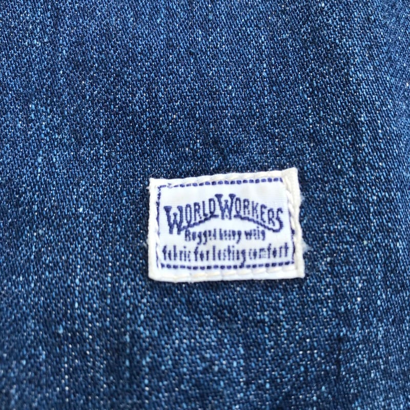 70年代ころのWORLD WORKERSデニムカバーオールです。1975年にBIG JOHNよりワークラインとして展開されたWORLD WORKERSの希少な当時のオリジナルです。裏地にブランケット地のライナーが付くタイプです。コーデュロイ襟や、チンストなどワークウェアとしてのディティールもしっかりと作りこまれております。色残りも8割ほどあり、美品です。袖口や裾に程よくパッカリング出始めています。これからの経年変化も存分に楽しめる1着です。サイズは38でLサイズの表記となっています。