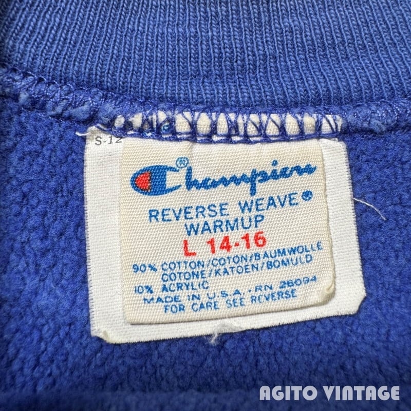 80's Champion チャンピオン リバースウィーブ スウェット 目付き ブルー 定番 刺繍タグ ユースL(レディースML相当)USA製 希少 ヴィンテージ BA-2901 RM3322H