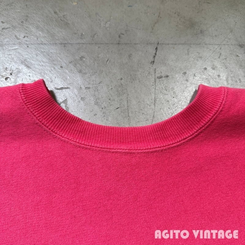 90年代のChampionリバースウィーブスウェットです。刺繍タグが付くUSA製です。1934年に誕生したリバースウィーブは現在もそのデザインはほとんど変わることなく非常に人気の高いアイテムとなっています。ご紹介するこちらは目付きと呼ばれるブランドアイコンの目玉が刺繍されたモデルでリバースウィーブの定番アイテムです。人気の高いピンクカラーで若干色褪せがあり腹部にうす汚れはございますが目立つダメージは特に無くコンディションの良い個体です。X-LARGE表記で程よいゆったりサイズです。定番だからこそ1着は持っておきたいアイテムなのではないでしょうか。綺麗な色味で、M-65フィールドパーカーなどと合わせても良い差し色となりオススメです。