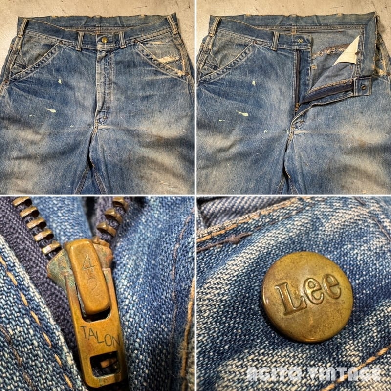 60's~ Lee 191Z リー デニムペインターパンツ 黒タグ 42TALON ペンキ ダメージ リペア グランジ ジャンク ウエスト実寸W34 USA製 希少 ヴィンテージ BA-2925 RM3346H
