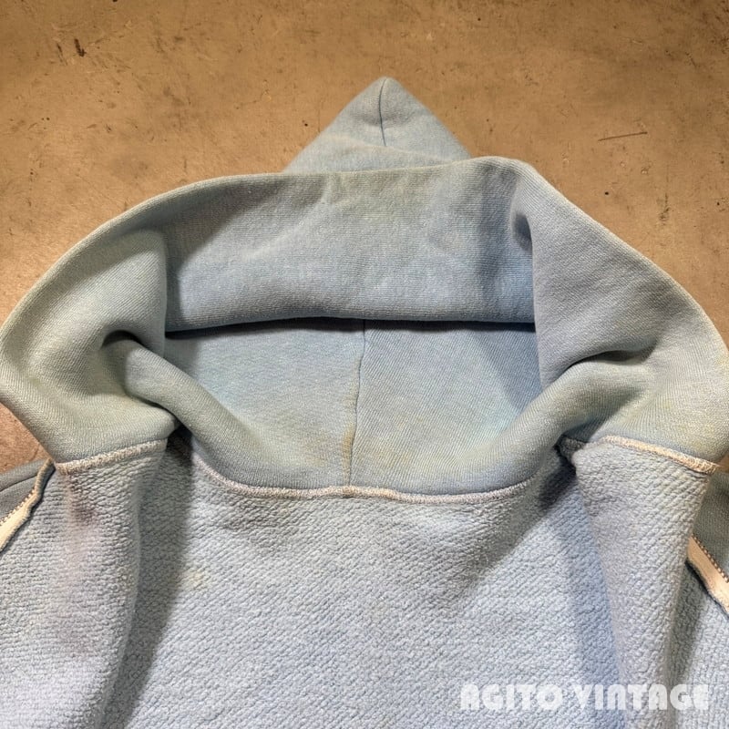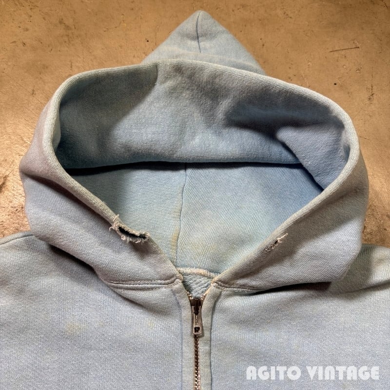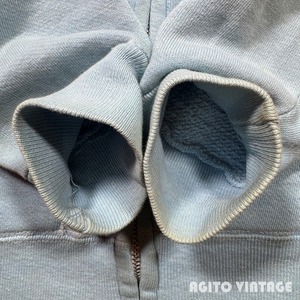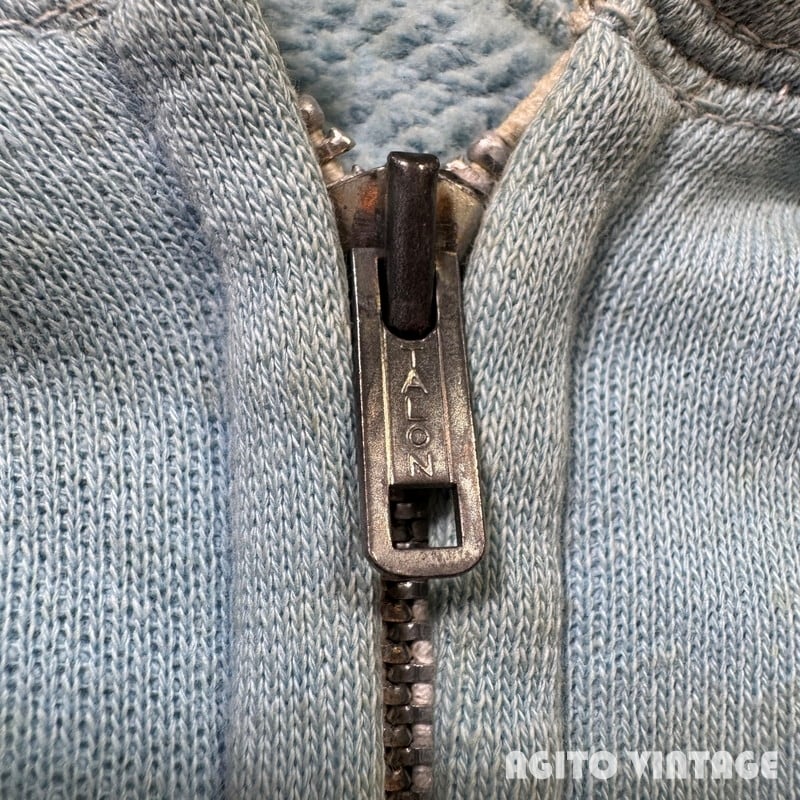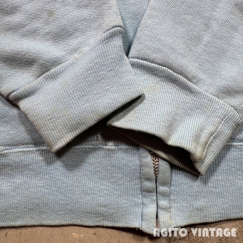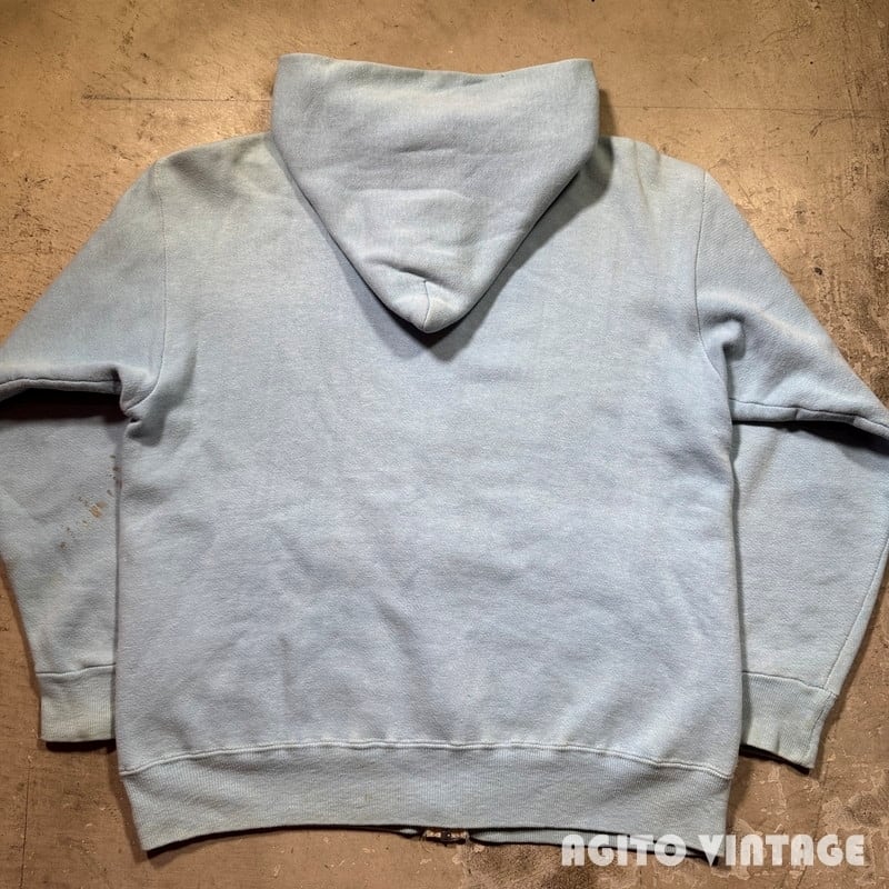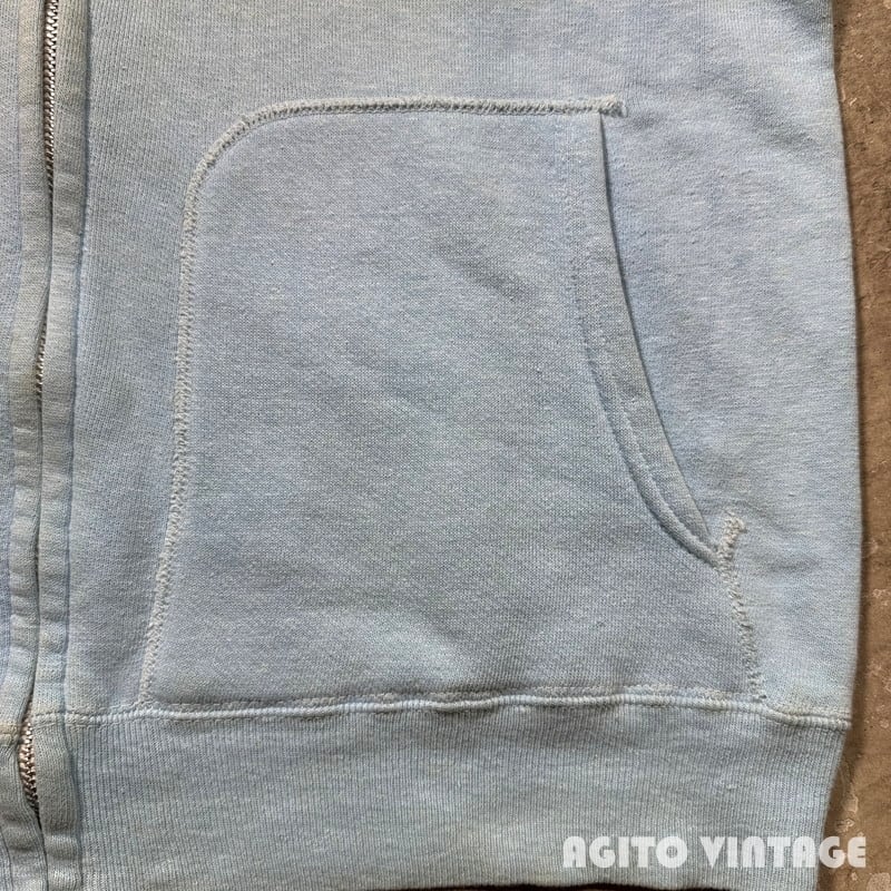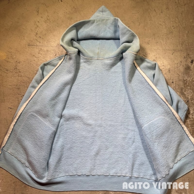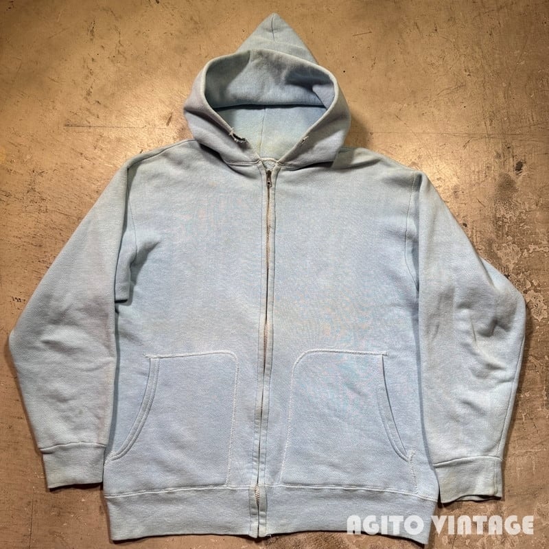 ~60's Unknown セパポケジップアップスウェットパーカー ライトブルー アルミTALONジッパー フェード M相当 希少 ヴィンテージ BA-2926 RM3347H