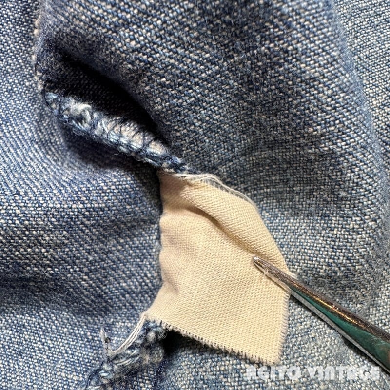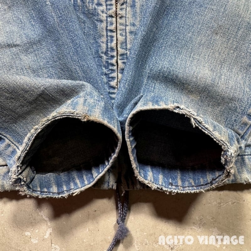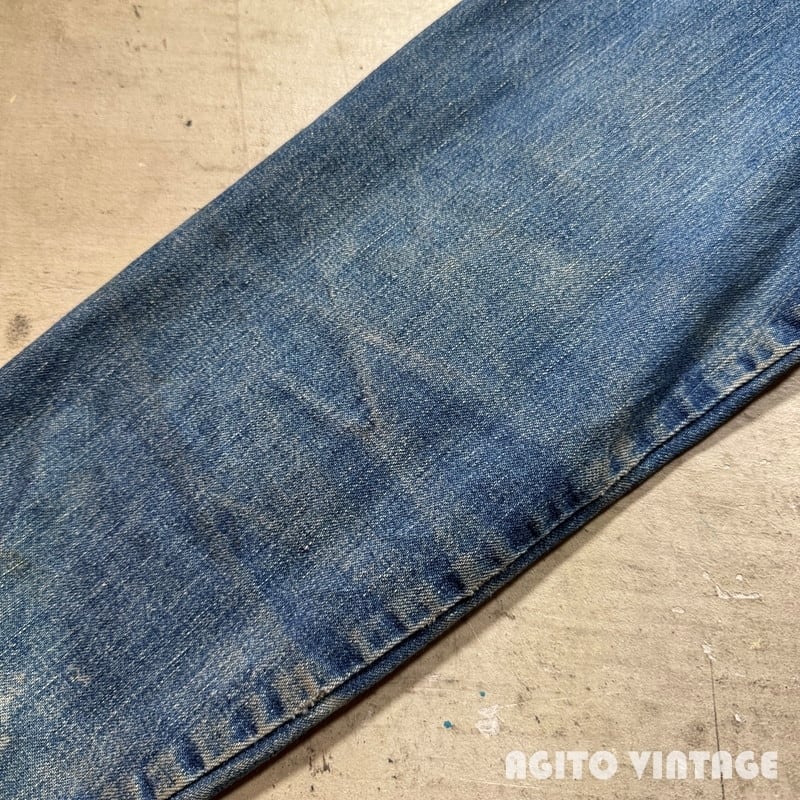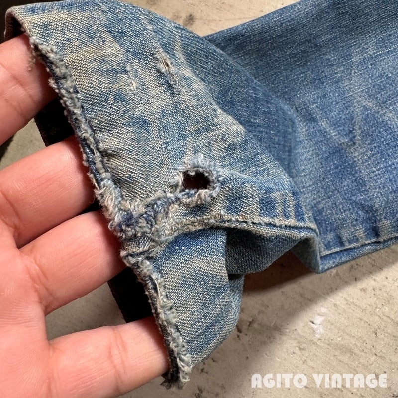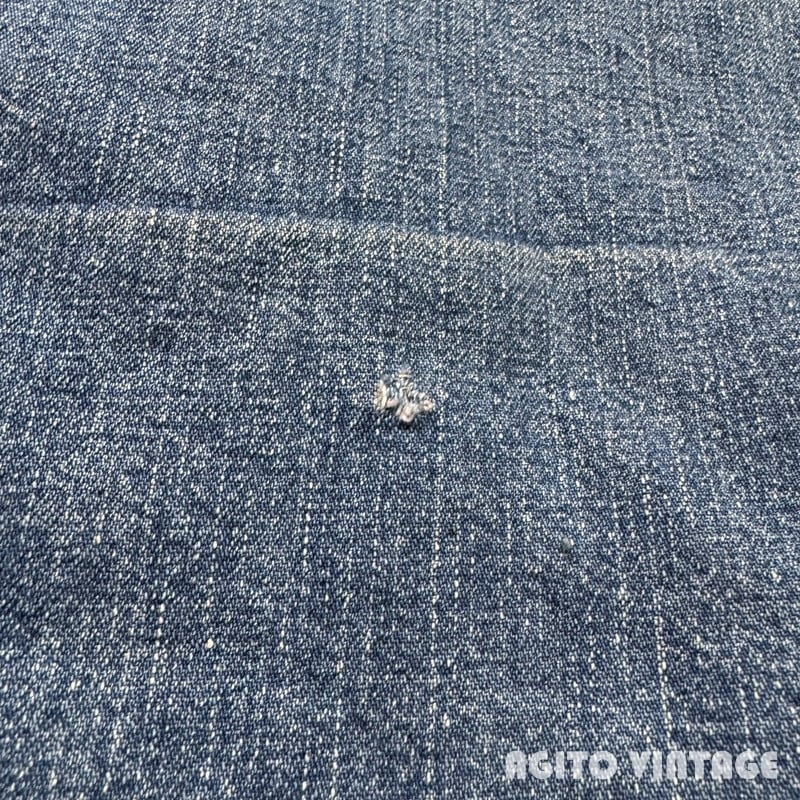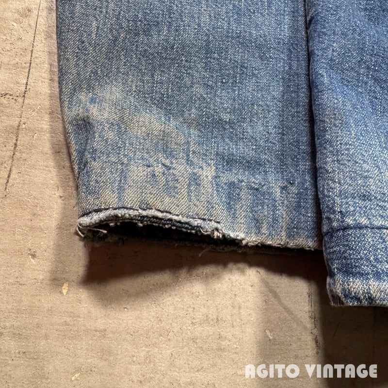 70年代頃のLeeジップアップデニムパーカーです。三角の黒い吊りタグが付くUSA製です。ペインターパンツ等で使われるライトオンスデニムを使用していますのでデニムながらもごわつきはございません。フロントにはブラスのTALONジッパーが採用されています。首タグ、ピスネーム共に®MR表記が入ります。全体的に色落ちが見られ、袖先や裾、ポケットや背面等にダメージがございます。ライトオンスデニムならではの荒々しい色落ちで袖にはうっすらとハチノスも見られます。サイズはMR(MEDIUM REGULAR)表記です。ライトオンスデニムで薄手なので通年使える万能アイテムだと思います。ダメージなどございますが色落ちの雰囲気も良くワークパンツなどとの相性も良いと思います。特徴的なアイテムではありませんが1着あると何かと使えますのでオススメです。