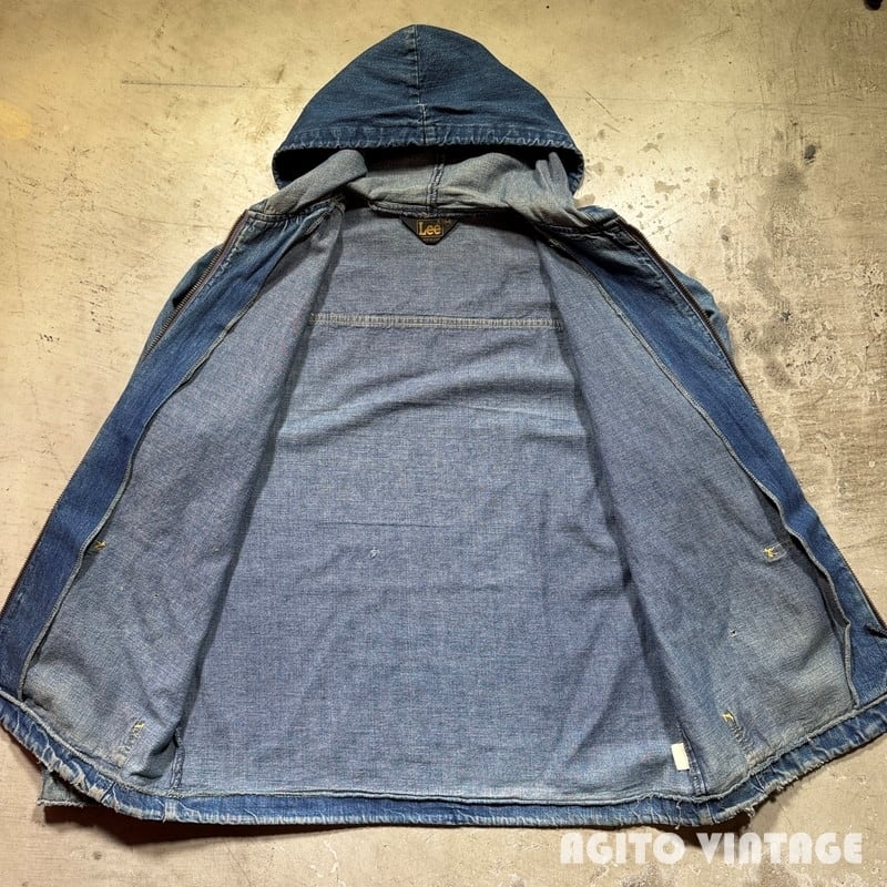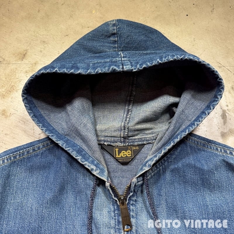70's Lee リー ジップアップデニムパーカー ライトオンスデニム TALONジッパー ハチノス ダメージ有り MEDIUM REGULAR USA製 希少 ヴィンテージ BA-2938 RM3359H