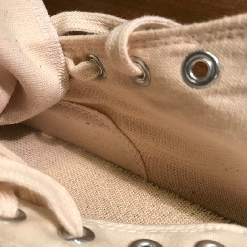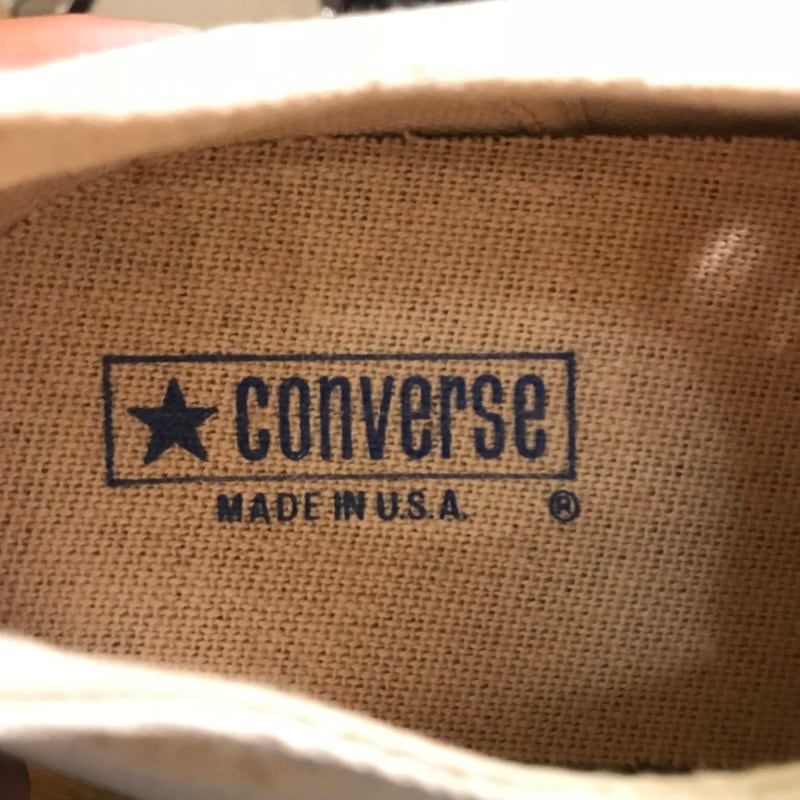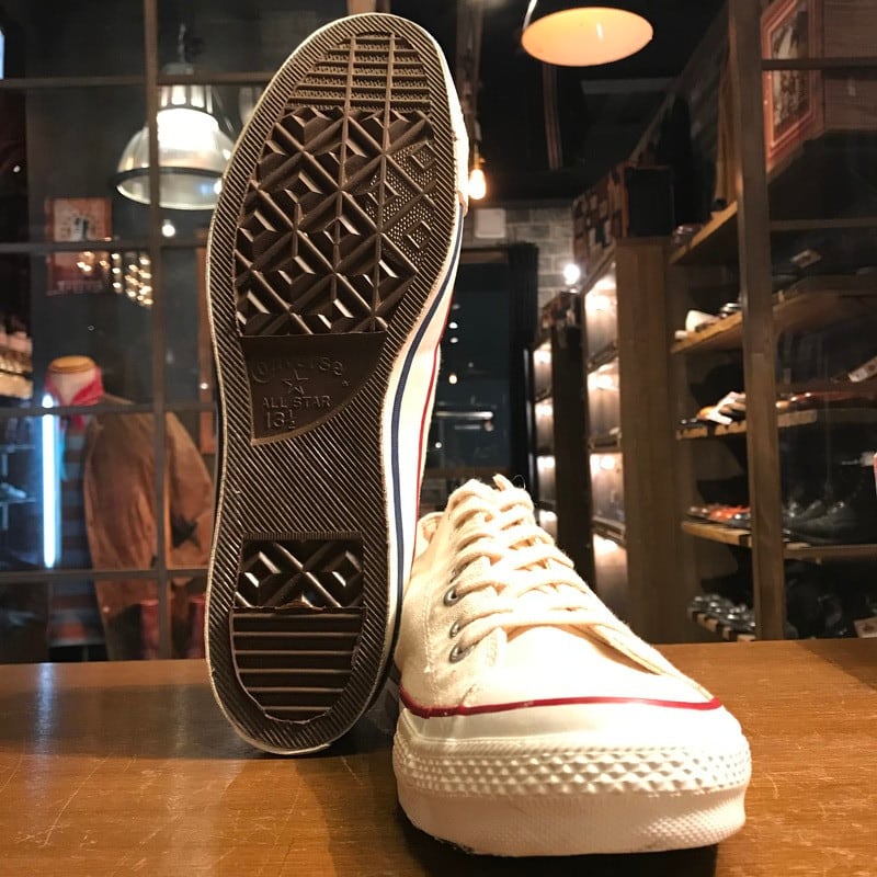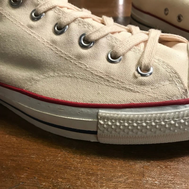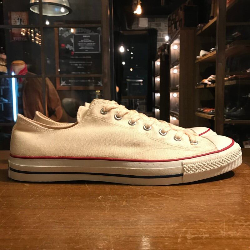 80's CONVERSE コンバース ALL STAR LOW オールスターロー デッドストック NOS 生成 オフホワイト 赤箱 青枠 USA製 US13.5 サイドステッチ 当て布 希少 ヴィンテージ USA製