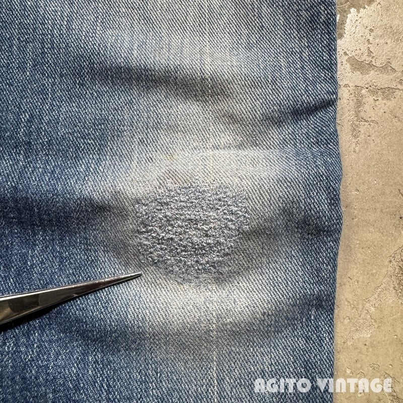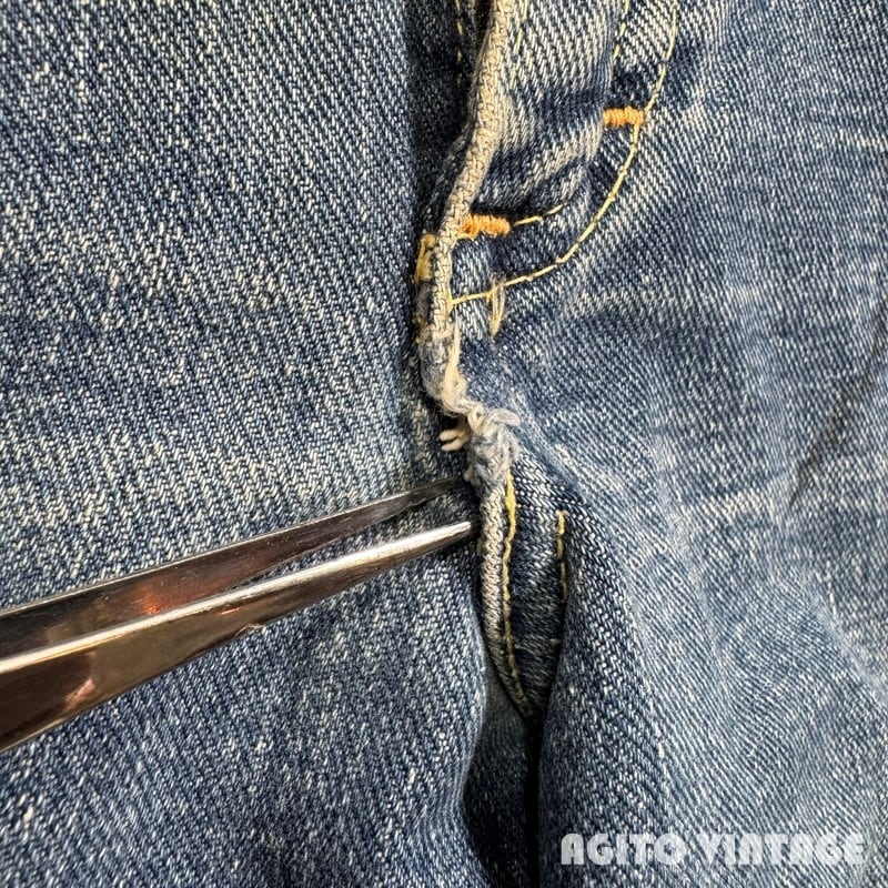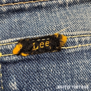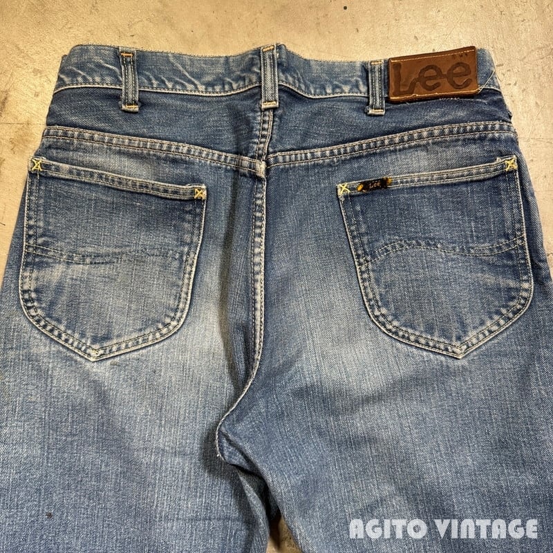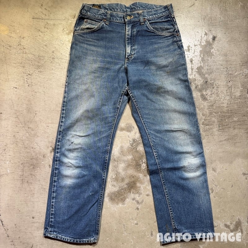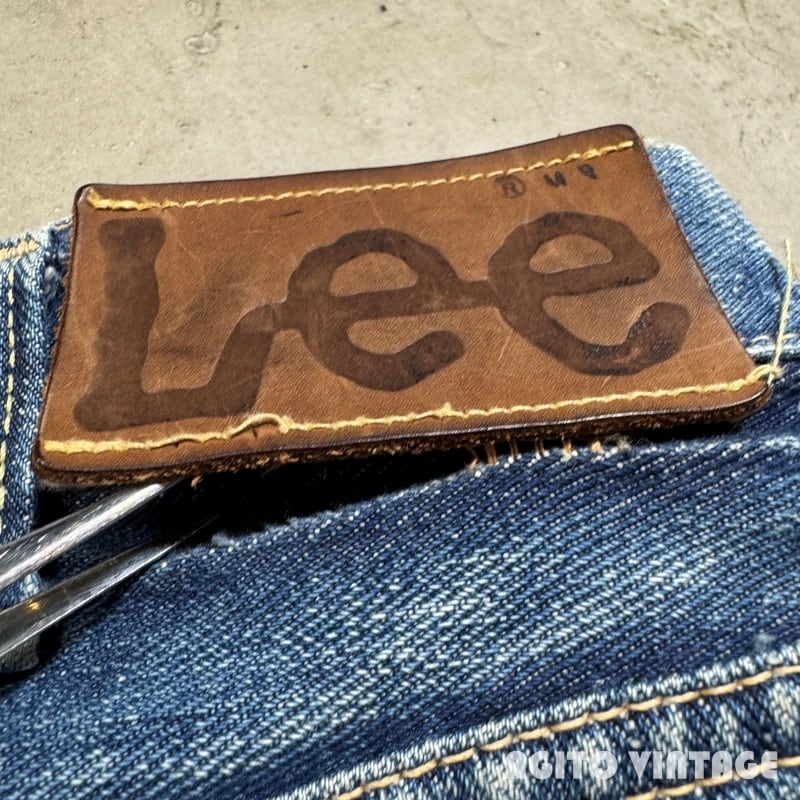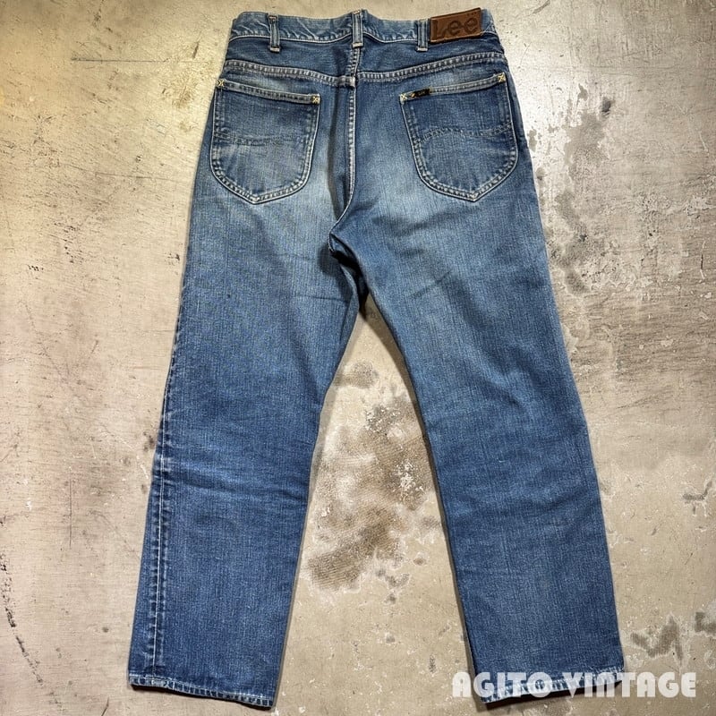 60年代のLee RIDERS 101Z デニムパンツです。101品番としては最終頃のサイド黒タグが付くモデルです。フロントはTALONのセミオートマチックジッパーが使用されており、アウトシームは脇割りです。バックポケット裏に当て布が付きます。色残りは4割程ですがバランスよく良い色落ちをした個体です。バックポケットのピスネームに擦れがありますが恐らくMR表記は入らないかと思われます。フロントのジッパー下部にステッチが飛んだ箇所がございます。レザーパッチ下部のステッチが半分程切れています。右膝に小さなダメージ、左ひざ下付近にリペアが施されています。その他細かな擦れ等ございますが目立つダメージは無く状態良好です。ウエスト表記はW33ですが実寸はW32インチです。レングスも長すぎないのでサイズが合う方も多いのではないでしょうか。生地もまだまだしっかりとしていますので長くご愛用頂けますのでお探しだった方は是非いかがでしょうか。