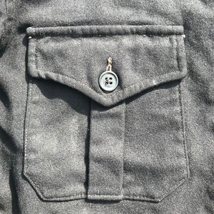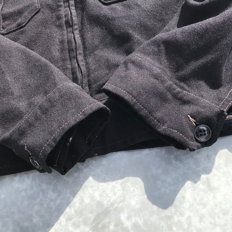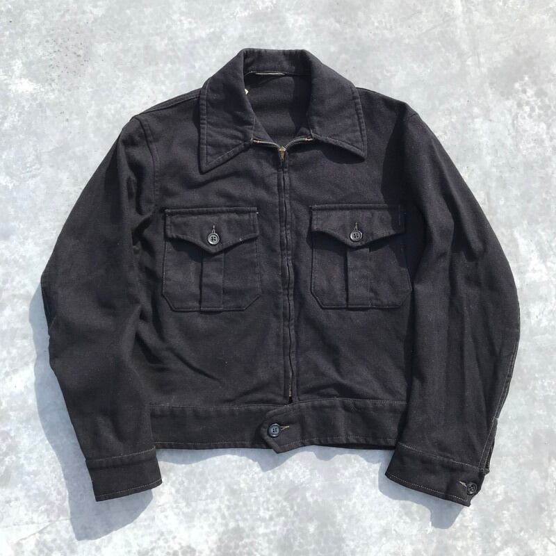40~50年代頃のHERCULESウールジャケットです。アメリカの3大ストアSEARSが展開する人気のプライベートブランドです。古い年代の黒タグ、フロントはCROWN社のスプリングピンロックジッパーですが、スプリングがかみ合っていません。胸元にプリーツの入ったポケットが2つ付いています。右袖のアウトシームにほつけがあり、手縫いで補強されており、背面腰あたりもリペア箇所がございます。絶妙なショート丈で、シンプルなデザインですので、コーディネートしやすいアイテムです。