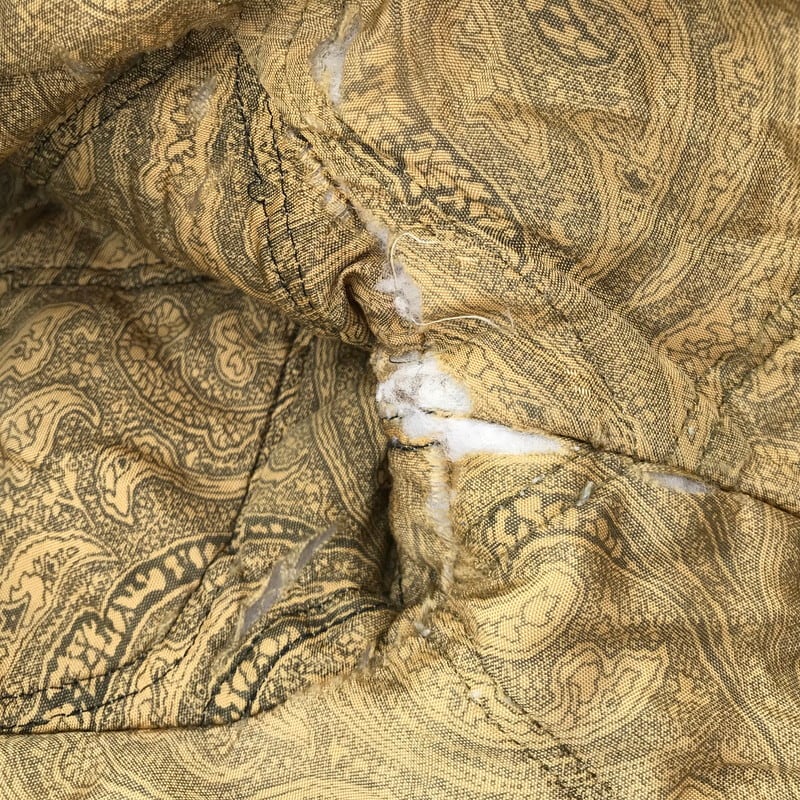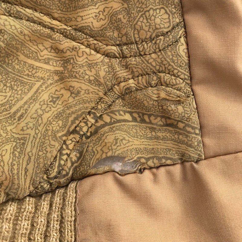 70~80年代頃のderby of San Franciscoのダービージャケットです。80年代にサンフランシスコのスケーターやパンク等ストリートカルチャーに密接しているやんちゃな若者の間で、人気を博したジャケットです。肩回りに入った独特な切り替えしが特徴で、ポケットはハンドウォーマーポケットとZIPポケットの2重構造となっています。首元のレザーのハンガーフックは欠損しており、内生地の脇部分や裾のあたりに生地の破れがございます。フロントは一番下のボタンが欠損しています。所々に小さな汚れはございますが、38とサイズも良いので、当時のストリートカルチャー等お好きな方は是非いかがでしょうか?