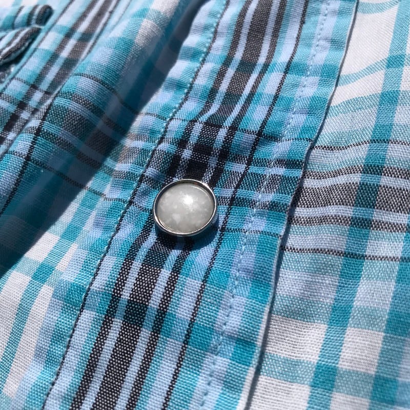 50年代頃のLEVI'Sウェスタンシャツです。この年代の特徴でもあるショートホーンタグの付くモデルです。爽やかなブルーのチェックで、通年使えるアイテムです。首元に変色、左ポケットの上に1cm程の小穴がございます。左脇アタリに擦れが見られます。所々ボディの色が褪せている箇所がございますが、比較的美品かと思われます。ボタンはすべてSNAPPERSのスナップボタンで欠損はございません。サイズ表記はございませんが、M~L位です。