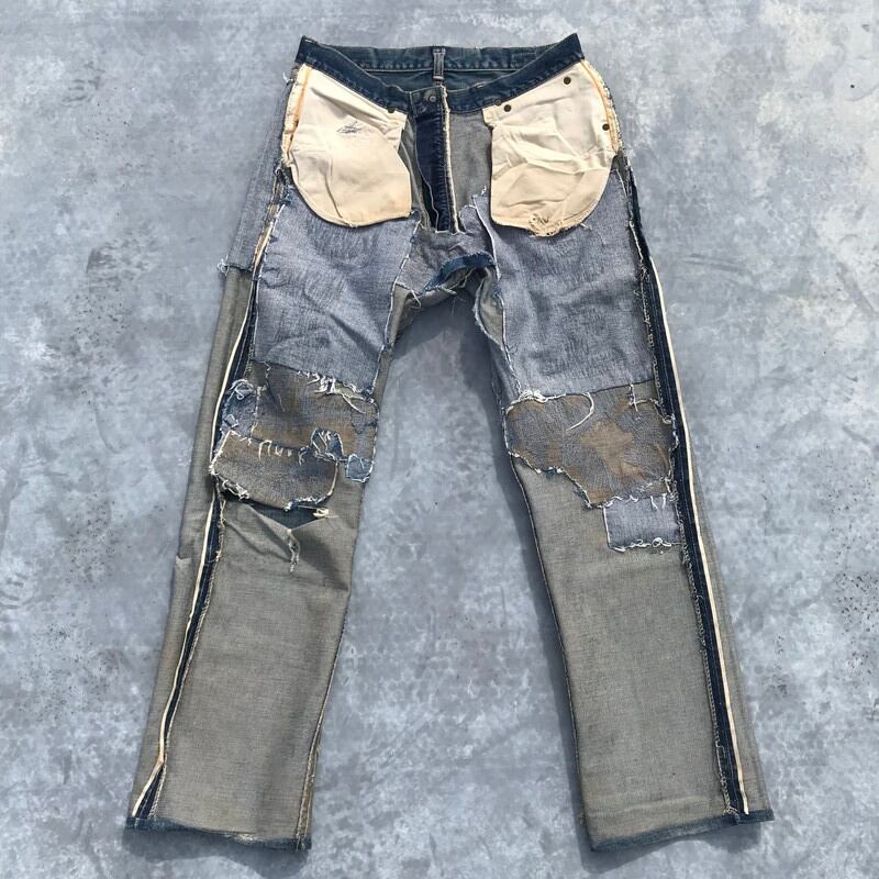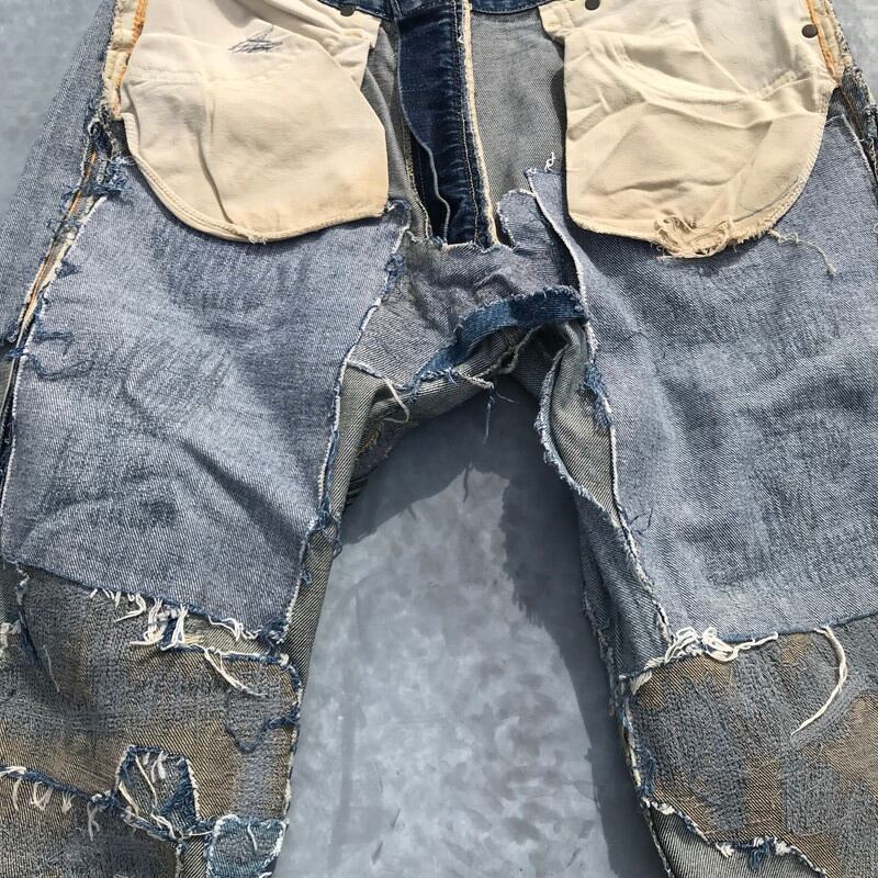 50's 60's Lee RIDERS リー ライダース 101Z サイド黒タグ オリジナル デニム ダメージ グランジ リペア JUNK 色落ち W33 希少 ヴィンテージ