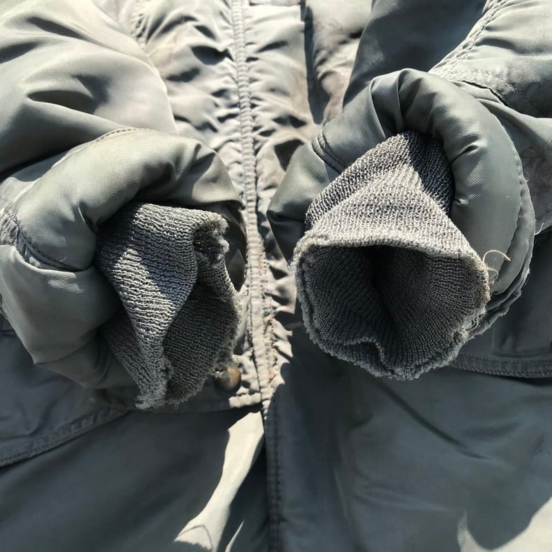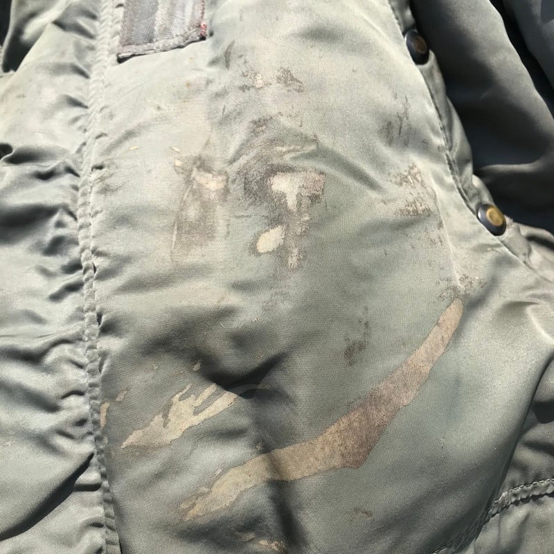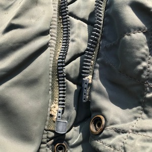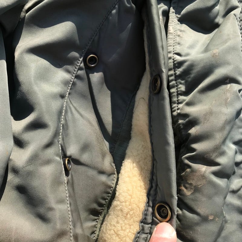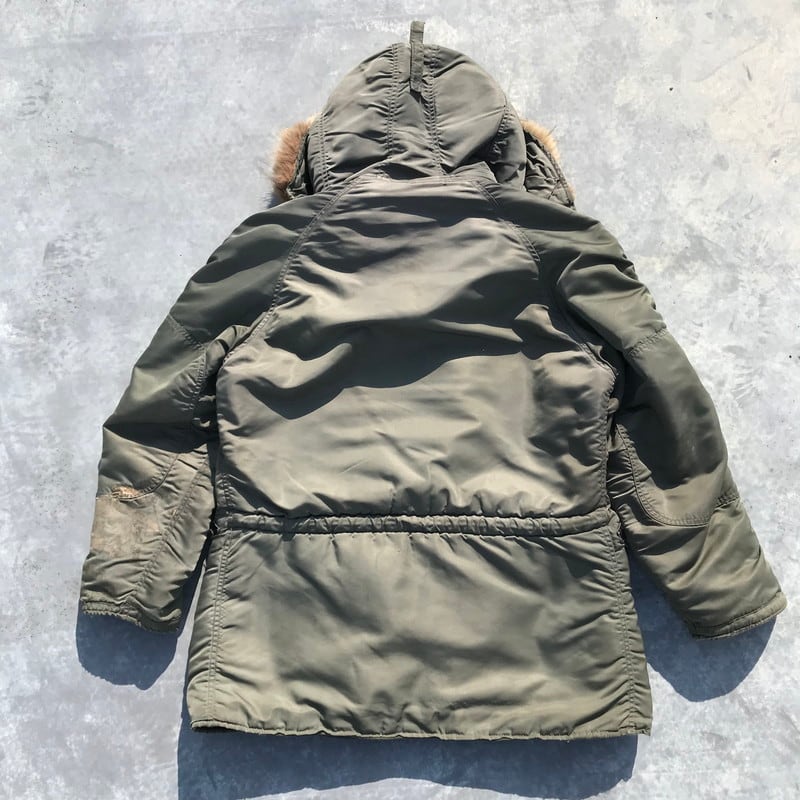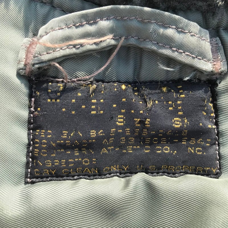 50年代の希少なN-3Bフライトジャケットです。1953年頃に採用されたミリタリーアイテムの中でも1番と言える知名度のN-3Bです。幾度となく改良されましが、こちらは50年代に作られた初期型モデルです。首元には黒タグ、文字は擦れて見にくくなっていますが、SOUTHERN ATHLETIC社製。MILスペックなどは解読が難しくなっています。コヨーテのファーですが毛足は短くなっています。フロントジッパーが破損していますので、開閉できません。酸素ホースを留めるオキシジャントタブや、左腕にはエアフォースマークのインシグニアがプリントされています。リブにダメージや全体に汚れもございますので特価とさせていただいております。【身幅】64cm【着丈】80.5cm【袖丈】ラグランの為首元から75.5cm