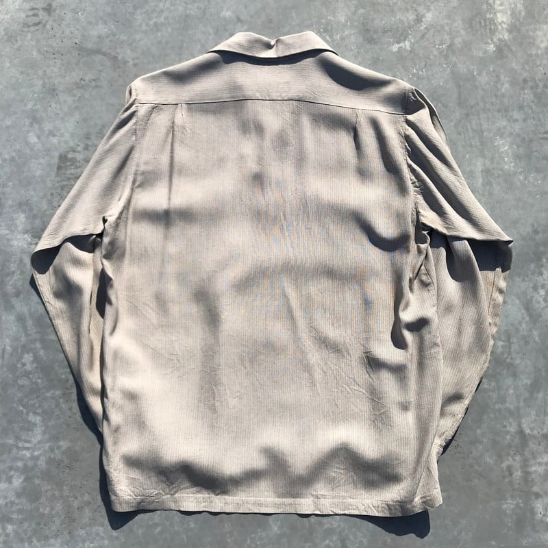 40's 50's A Sherman ピンストライプ ギャバジンシャツ オープンカラー シェルボタン ロカビリー M 希少 ヴィンテージ