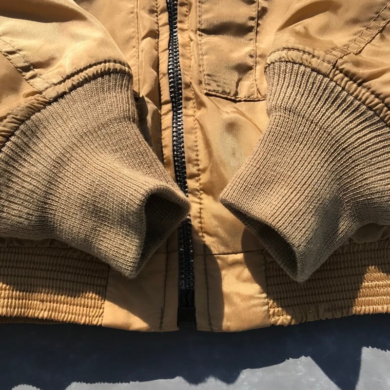 SPIEWAKのG-8WEPフライトジャケットです。恐らく90年代頃に作られた物と思われます。あまり見かけないゴールドカラーで、リブのヘタリなど無く美品です。有名なストリートブランドが、サンプリングしたり、スケーターが愛用するなどで人気のモデルです。元々着丈が短めのモデルですが、サイズは40ですので、程よい丈感で着用していただけます。
