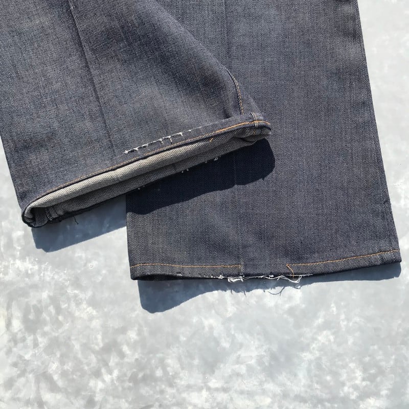 70年代頃のリーバイス519スタプレデニムパンツです。トップボタン裏刻印は31、ジッパーは42TALON、ウォッチポケット無し、オレンジタブ、Big E、スレーキ裏スタンプ有り。ライトオンスのデニムで、まだまだ色も濃く育て甲斐のある1本です。フロント腿あたりに3箇所小穴があり、バックポケットのステッチほつれ、裾に若干のダメージがございます。W34と良いサイズですので、お探しだった方必見です。