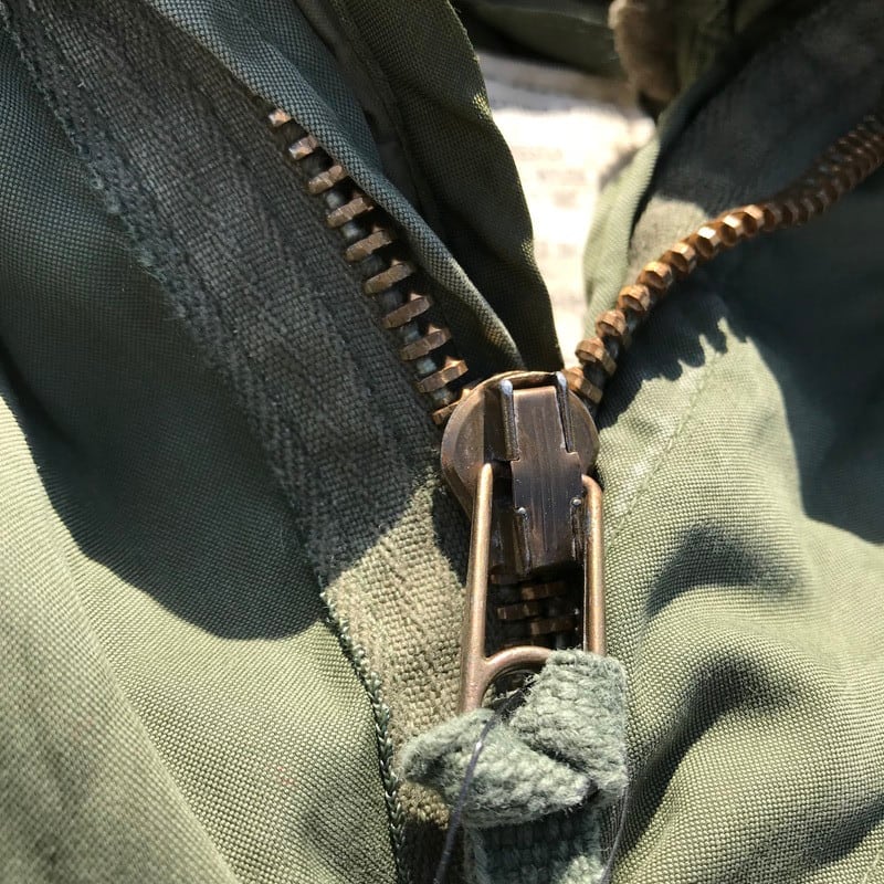 70年代のPARKA EXTREME COLD WEATHER モッズコートです。ボディーはWYNN社、ライナーはGIBRALTAR INDUSTRIES社、フードは不明の全て違うメーカー製です。フードファーはコヨーテからアクリルファーに替わり、ワイヤーで形状を維持できます。ジッパーはブラスを使用しています。大きなダメージはございませんが、ライナーのステッチ飛びが所々見られます。SMALL REGULARと日本人にはゴールデンサイズですので、フルセットのモッズコートもなかなか見なくなりましたので、お探しだった方は必見です。