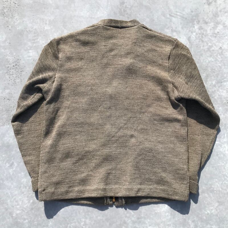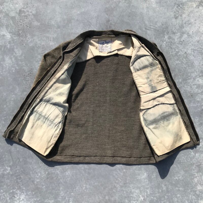 70年代辺りに作られたと思われるH.C.Jonesシューティングカーディガンです。胸ポケット、ハンドポケットの入れ口とガンパッチにスエードが使用されており、フロントはEMARジッパーを使用しています。ポケットの裏地にスエードの色移りがございます。右袖や首元、左二の腕あたりが若干変色しております。42表記でM~L位です。コーディネートのスパイスにいかがでしょうか?