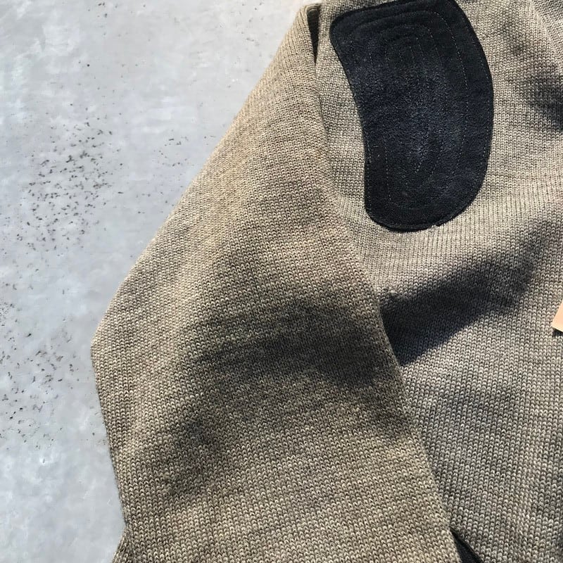 70's H.C.Jones シューティングカーディガン ハンティング ウールニット グレー ガンパッチ スエード アウトドア 42 希少 ヴィンテージ