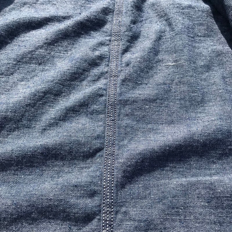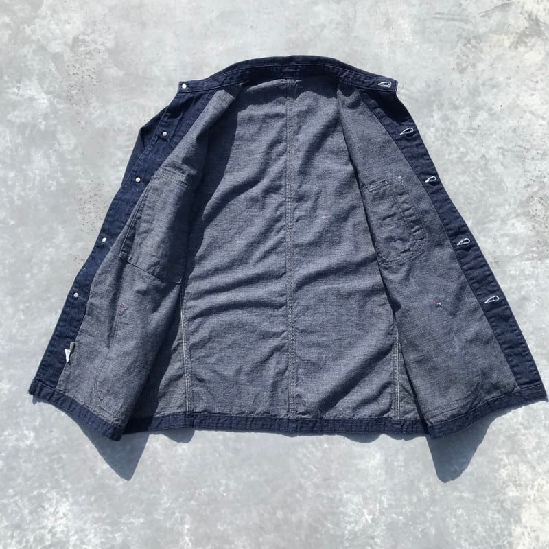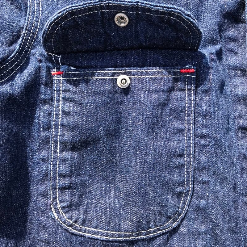 50年代から60年代頃に作られたと思われるデニムカバーオールです。メーカー名は不明ですがBLUE BELL社のカバーオールに酷似しています。ボタンには全てSanforizedと入ります。色落ちは無く濃い濃いで、ダメージのほとんどないミントコンディションです。アームホール内側の縫製は元からなのかリサイズを行ったのかは定かではございませんが、着用に問題ございません。表記は42ですが、程よいAラインで着丈もそこまで長くないので170cm70kgで程よいサイズ感着用できます。一から育てるには申し分ないコンディションですので、おススメです。