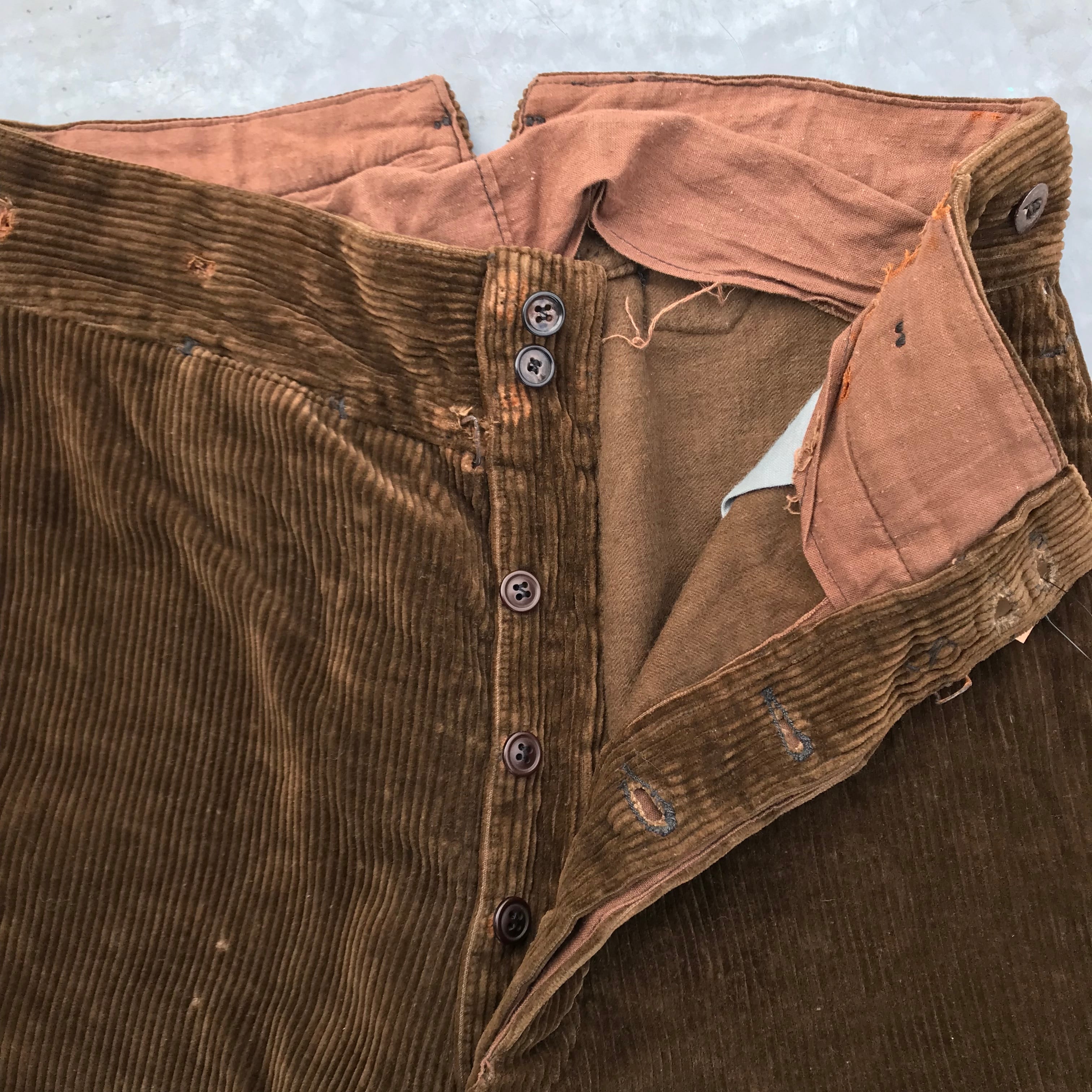 40's 50's UNKNOWN 太畝コーデュロイワークパンツ シンチバックフランスブラウン サスペンダーボタン W32 希少 ヴィンテージ