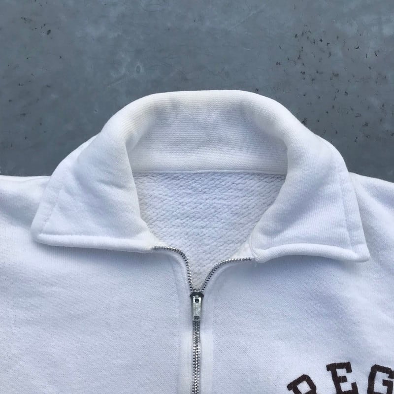 50's 60's UNKNOWN ハーフジップ スウェットシャツ ホワイト 白 FALCONジッパー 片爪 フロッキー REGIS COLLEGE M~L 希少 ヴィンテージ