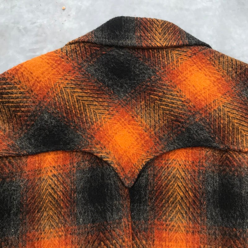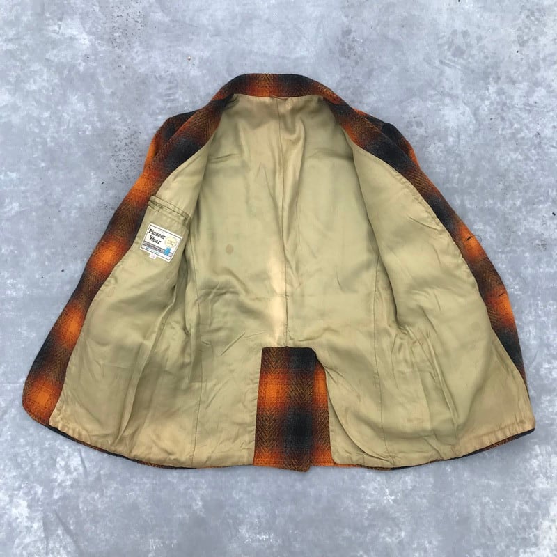 70's PIONEER WEAR パイオニア オンブレチェックウールジャケット オレンジ クルミボタン 38 希少 ヴィンテージ