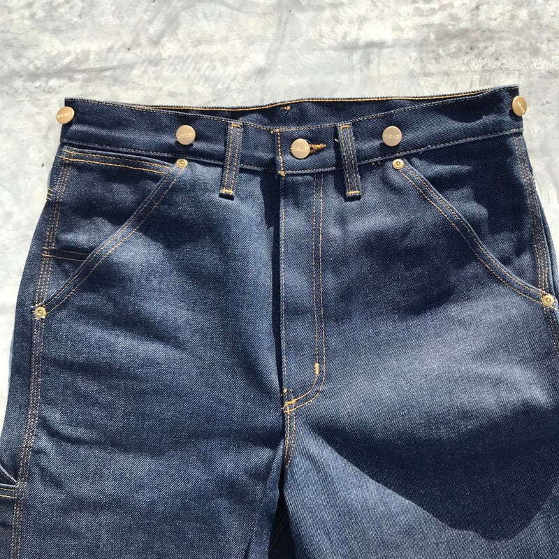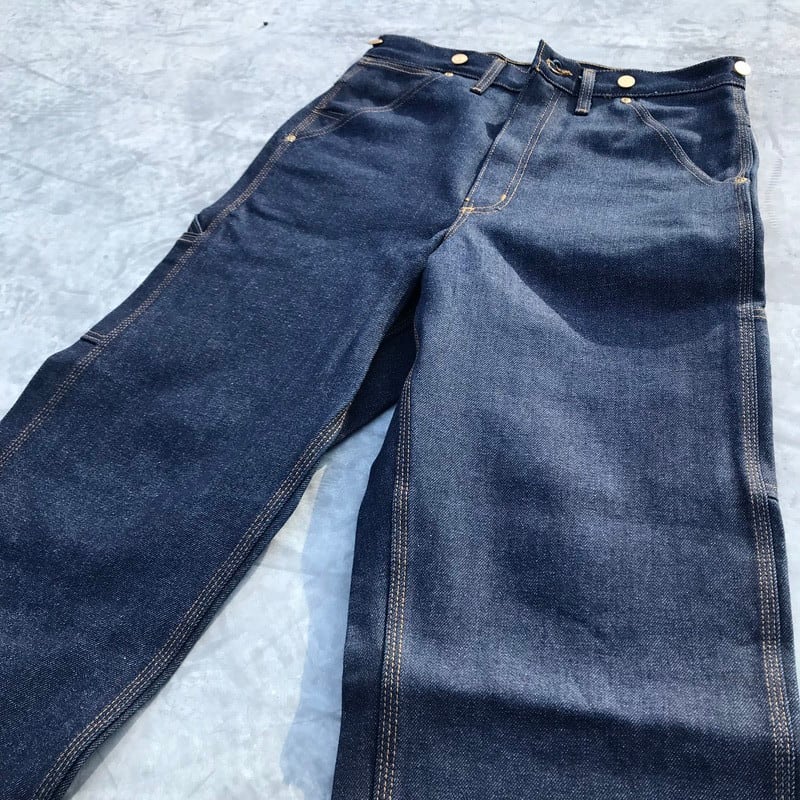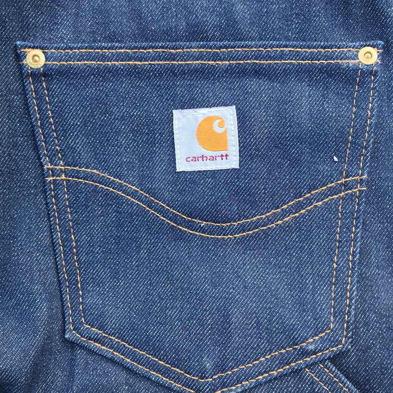 CARHARTTのデニムペインターパンツです。年代的には古くありませんが、通常のペインターと違い、バックポケットのステッチがLAZY DUCKと呼ばれる鳥が羽ばたく様をステッチングしたあまり見かけないタイプです。水も通っていないノンウォッシュで、試着程度のミントコンディションです。サイズはすっきりと穿けるW31です。1から育てるには最高の1本です。希少なUSA製です。
