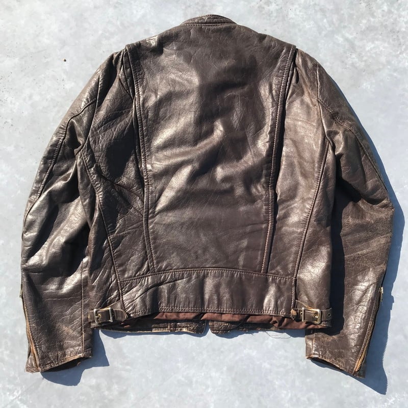 60's 70's BROOKS LEATHER SPORTS WEAR ブルックス シングルライダースジャケット レザー ブラウン TALON オイルメンテ済 バイカー BUCO M位 希少 ヴィンテージ