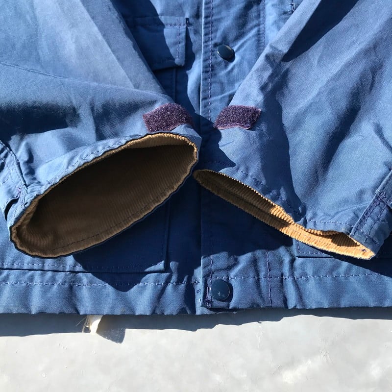 70年代初期頃のSIERRA DESIGN パナミントジャケットです。首タグは7本木で、60/40タグは付きません。これ以前になると首タグが付かず60/40タグのみとなります。マウンテンパーカーのようですが、フードの代わりにコーデュロイ襟のスタンドカラーでシンプルなデザインです。復刻物は出ていますが、オリジナルは非常に珍しくあまり見かけないのでは無いでしょうか。目立つ汚れやダメージも無く綺麗です。Lサイズ表記ですがマウンテンパーカーなどに比べ着丈も短いので合わせやすいサイズ感です。冬はインナーに春はトップスに使えるアイテムですので、おススメです。