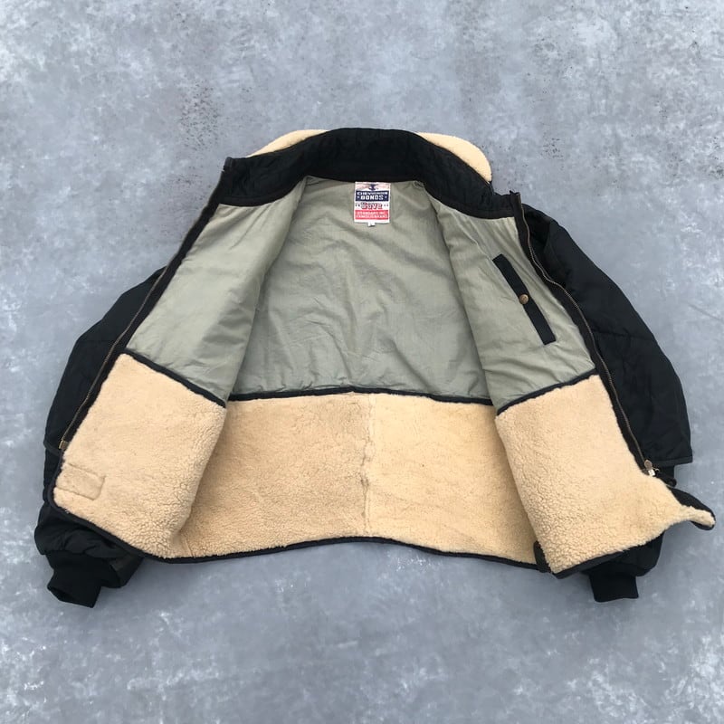 80's 90's CHEVINGNON シェビニオン ボンバージャケット ブラック キルティング ムートン フランス L 珍品 希少 ヴィンテージ