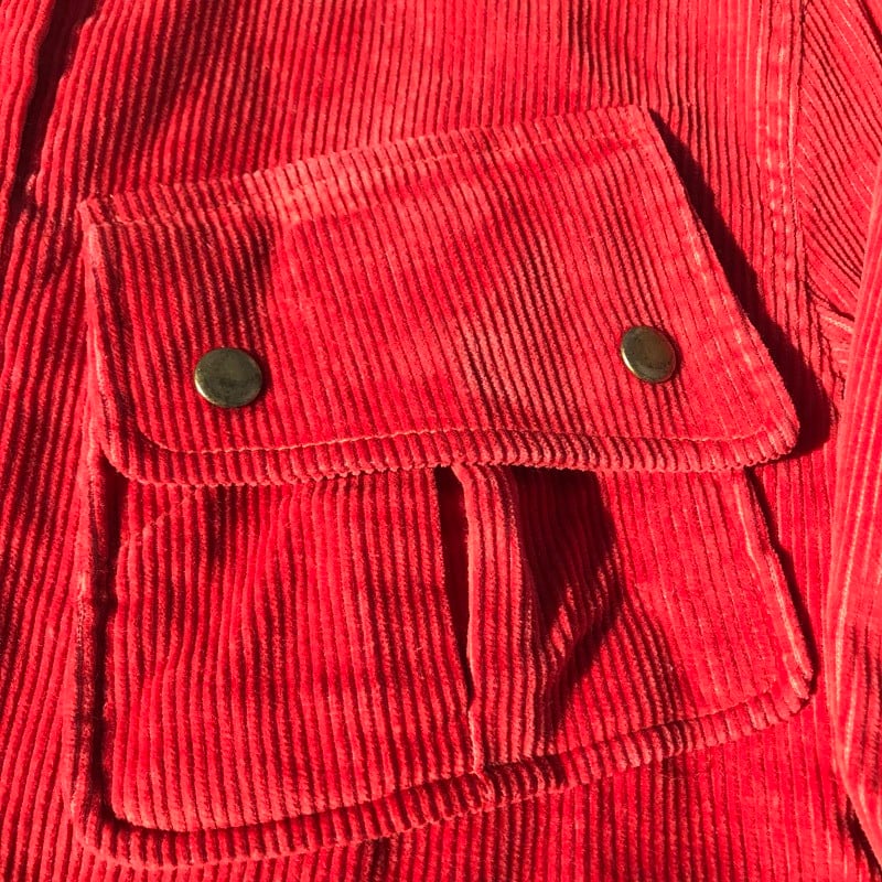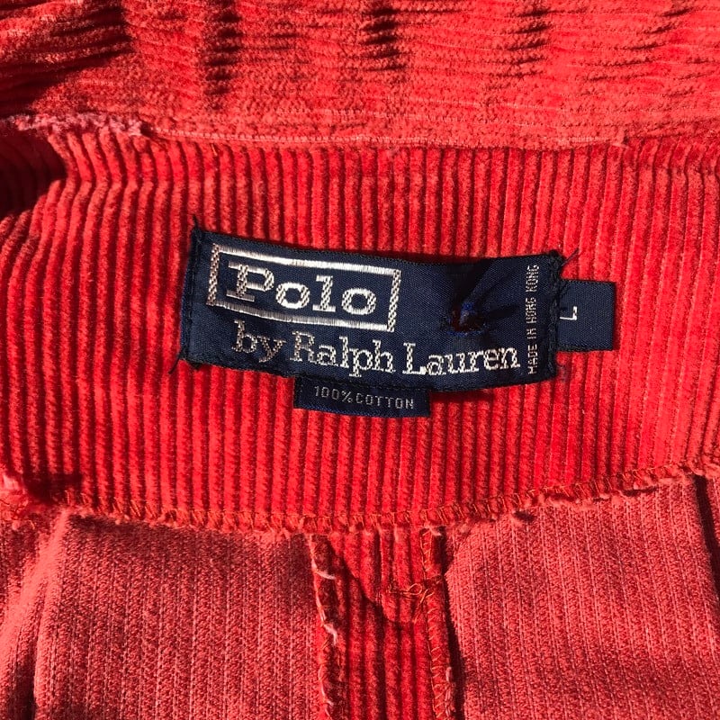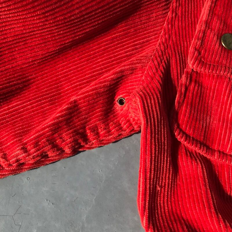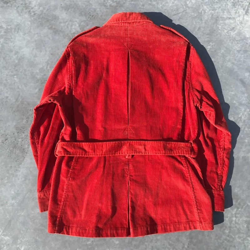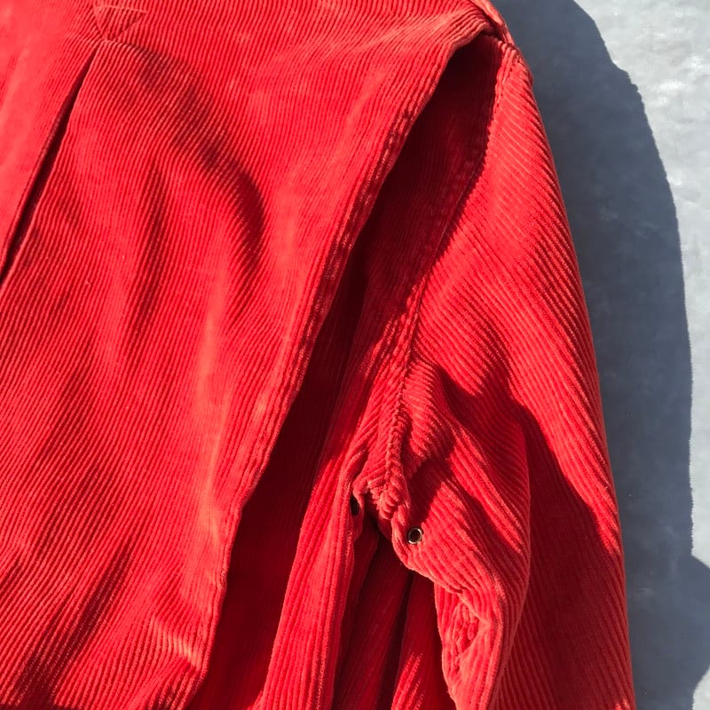 90年代頃のPOLO by RALPH LAURENのコーデュロイジャケットで、40年代のM-42 AIR BORNEジャケットタイプとなります。発色の良いカラーで赤というよりは朱色に近い色味です。フラップボタンのオス側が2段階付くところなど細部までオリジナルに近いディティールが盛り込まれています。ベージュのコットンサテンのようなタイプは見かけますが色付きのコーデュロイタイプはあまり見かけませんので珍しいかと思われます。シルエットも綺麗ですので、カジュアルにも綺麗めにも合わせていただけます。【肩幅】49cm【身幅】57cm【着丈】77cm【袖丈】60cm