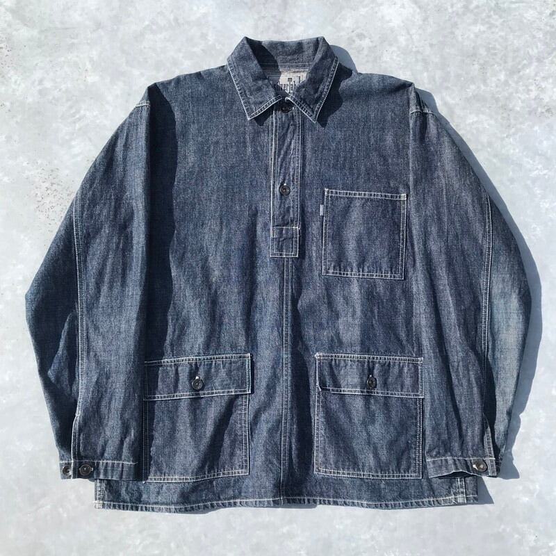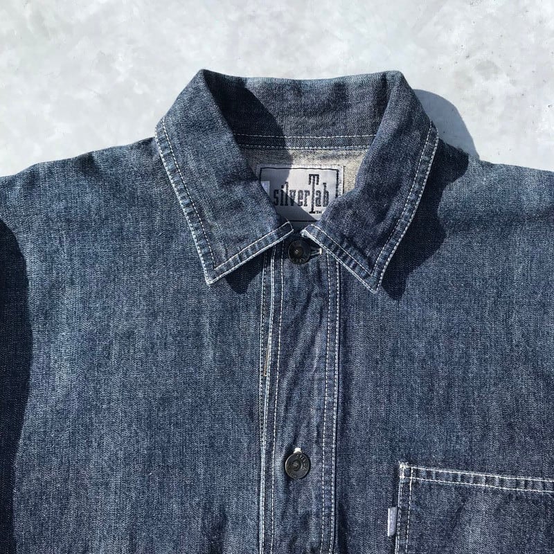 90年代のLevi's SILVER TABデニムプルオーバーシャツです。90年代のストリートシーンに欠かせないアイテムで当時のリーバイスのこんてぽらりーラインとして登場したSILVER TAB。こちらは、98年製の香港製。BAGGY等のパンツシリーズが有名ですが、こちらはあまり見かけないデニムプルオーバーで、色褪せもほとんどない濃紺のミントコンディションです。目立つダメージ等は得にございません。サイズもLでまさにゴールデン。ヴィンテージのミリタリーアイテムを彷彿させるシルエットも魅力的な1着です。