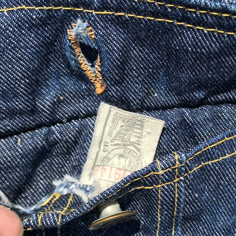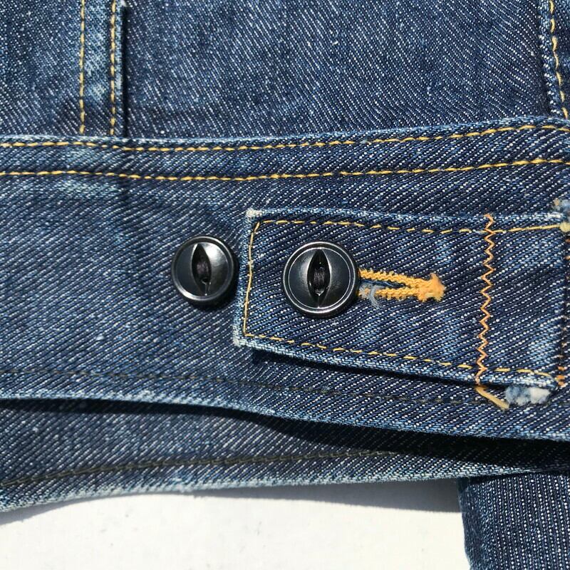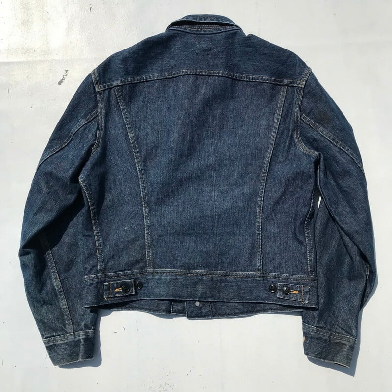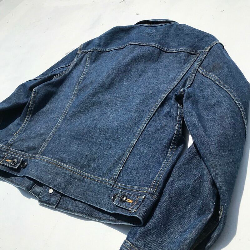 70年代初頭頃のLee101-Jデニムジャケットです。首タグのみMR表記が入り、胸元のピスネームには®マークのみとなります。しっかりとした縫製もさることながら、色見も非常に濃く残っており、これから育て上げるには持ってこいの1着です。サイズも40REGULARとゴールデンサイズですのでおススメなアイテムです。右肩後ろあたりに一部黒っぽく汚れている箇所がございます。ここまで美品のLeeはなかなか出てこないので、お探しだった方は必見です。