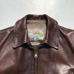 80's 90's AERO LEATHER エアロレザー HALF BELT レザージャケット 革ジャン バイカー ブラウン 高級 TALON 36 希少 ヴィンテージ