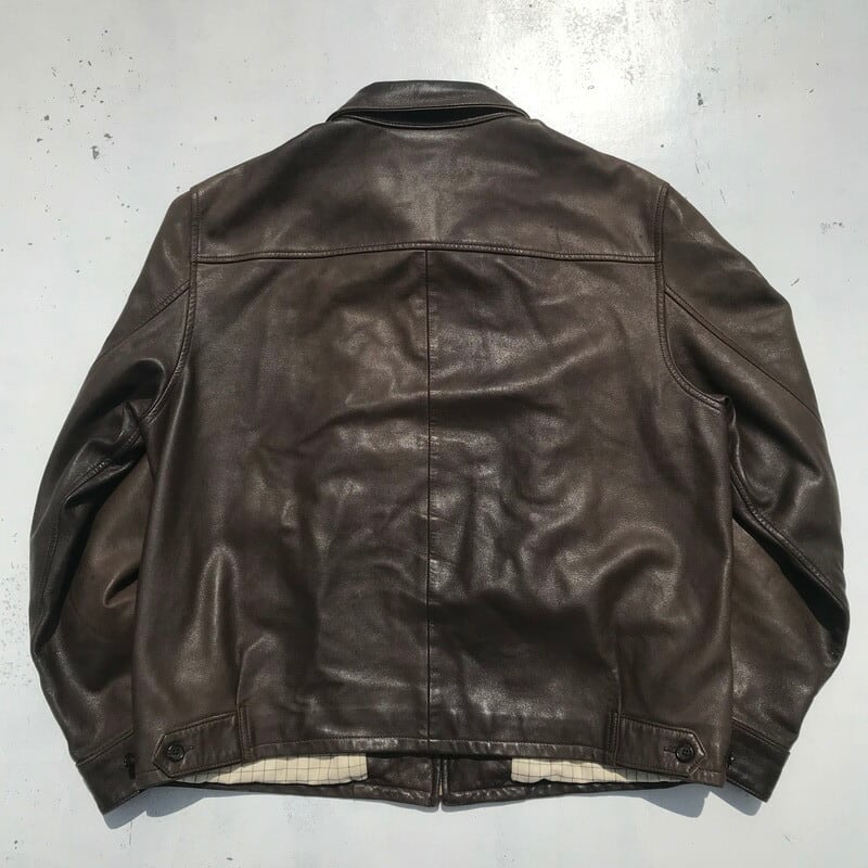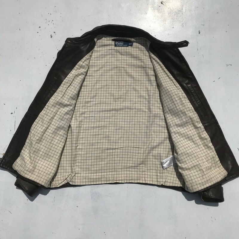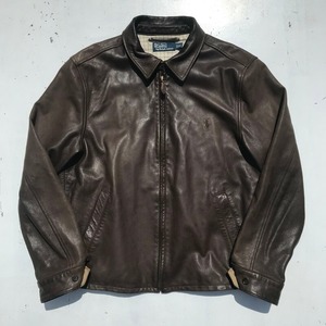 POLO by RALPH LAUREN ポロラルフローレン ラムレザージャケット スウィングトップ 本革 ダークブラウン XL Tバック 希少 ヴィンテージ