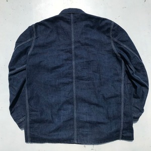 50年代頃のPOWR HOUSEデニムカバーオールです。アメリカ3大ストアのMONTGOMERY WARDが手掛けるワークウェアのプライベートブランドです。シカゴ創業という事もありワークウェアを中心に製造していた事で知られています。希少な工場タグも欠損せず、ボディの色合いも濃紺でダメージ無しのミントコンディションです。サイズは40~42位で170cm70kgのスタッフが着て肩幅と袖丈がややゆったりとした印象です。ここまで状態の良い個体はなかなか市場に出ませんのでコレクター必見のアイテムです。