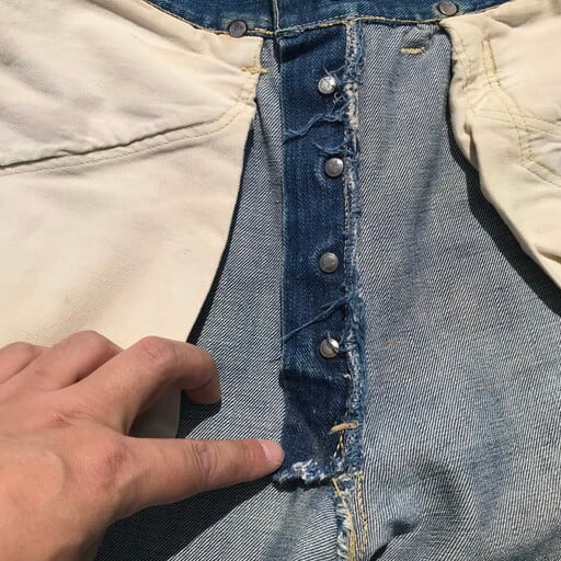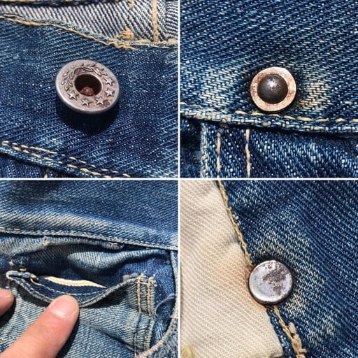 40's UNKNOWN ストアブランド 5ポケットデニム 大戦モデル WW2 月桂樹ボタン UFOリベット セルヴィッジ カットオフ W31 希少 ヴィンテージ