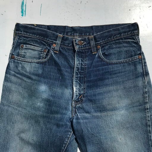 70年代初頭のリーバイス517-0217 Big Eです。1971年にデニムラインの517が発売され66前期へ移行するまでの僅か2年程という極めて短い期間のみ製造されていた希少なモデルです。刻印8、42TALON、スレーキスタンプ、紙パッチデカ文字、両面Big E赤タブ、不均等V、アウトシーム裏両面シングルステッチ。ゆるやかなブーツカットはシルエットも良く合わせやすい1本。右腿に2箇所、バックポケットに2箇所づつ小さなリペアがございます。濃淡のついた色落ちはスタイルを選ばず合わせていただけます。W34のゴールデンサイズです。517のビッグEは本当に希少ですので、お探しだった方は是非お見逃しなく。
