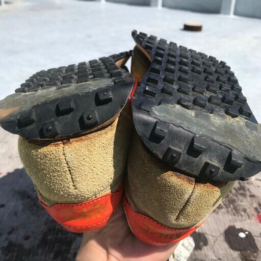70年代のNIKE LD-1000オリジナルです。1977年頃に発売されたこちらは、サイドに飛び出たフレアのワッフルソールが特徴で1年で1000マイル走る事が出来ると謳われたスニーカーです。復刻版と違い、ヒールやスウッシュはレザー素材を使用しています。アーチクッキーは硬化していますが、ソールは硬化しておりません。ソールの一部にシューグーで補強されています。サイズはUS9.5とゴールデンサイズです。コレクター必見のスペシャルアイテムです。