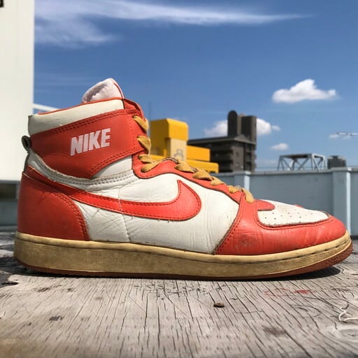 80年代のNIKEチームコンベンションです。エアジョーダンとならび人気も高くコレクションされている方も多いモデルです。アンクルパッド内側の印字が擦れて読みずらいですが恐らく86年製で間違いないと思われます。アンクル後ろに裂けがあり、内側スポンジが少しボソボソしておりますがレザーやソールの硬化も無くまだまだ現役で履けるアイテムです。サイズもUS10.5とバッシュとしてはゴールデンサイズですので、お探しだった方は是非。