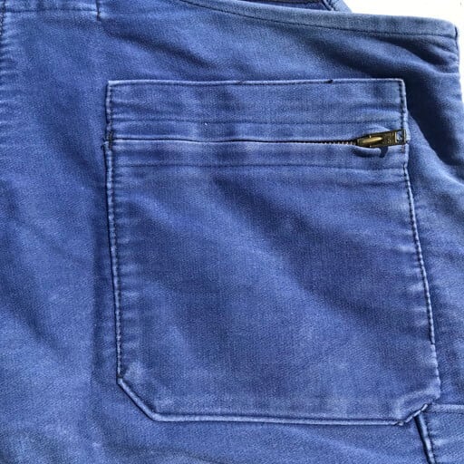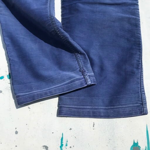 50's A ST MICHEL フレンチ モールスキン ワーク オーバーオール ローバック インクブルー フェード W40 ラッカーボタン ユーロ 希少 ヴィンテージ
