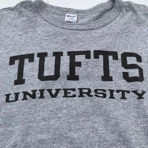 80's Champion チャンピオン Tシャツ 染み込みプリント 霜降り グレー TUFTS UNIVERSITY USA製 LARGE 美品 希少 ヴィンテージ